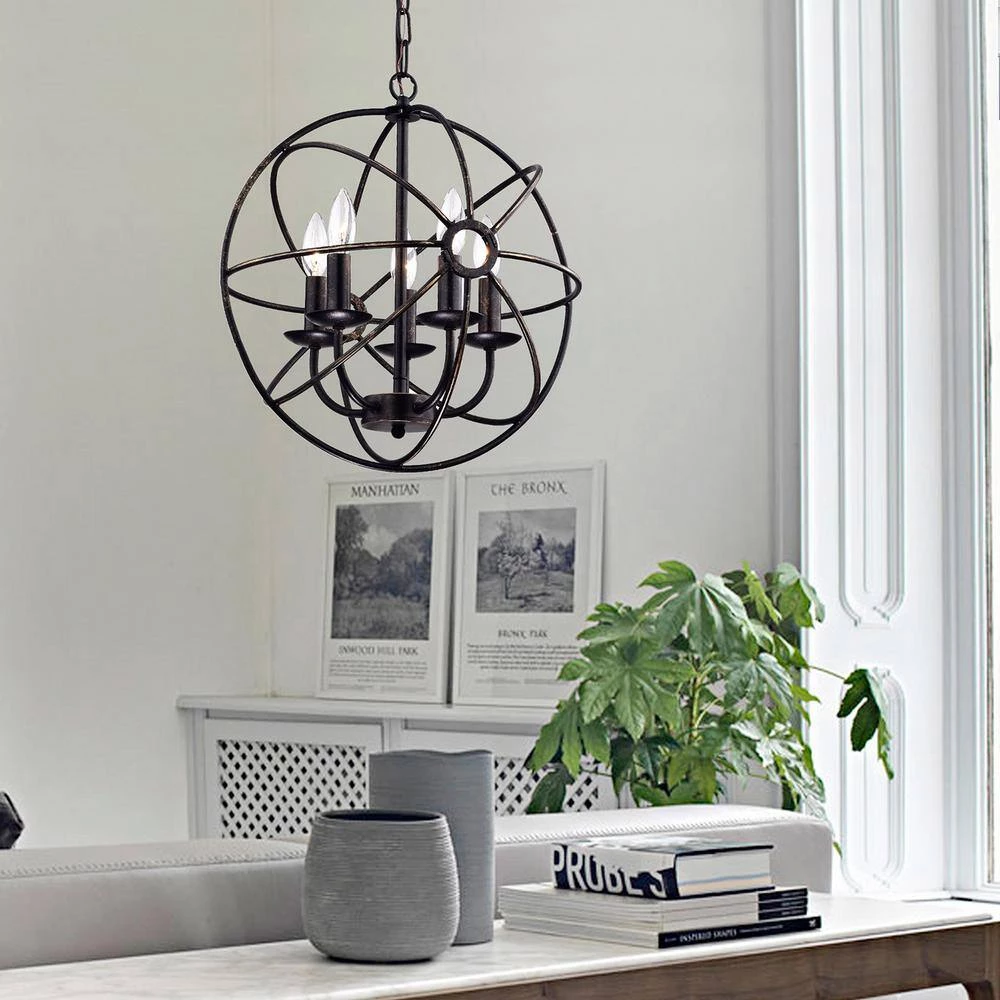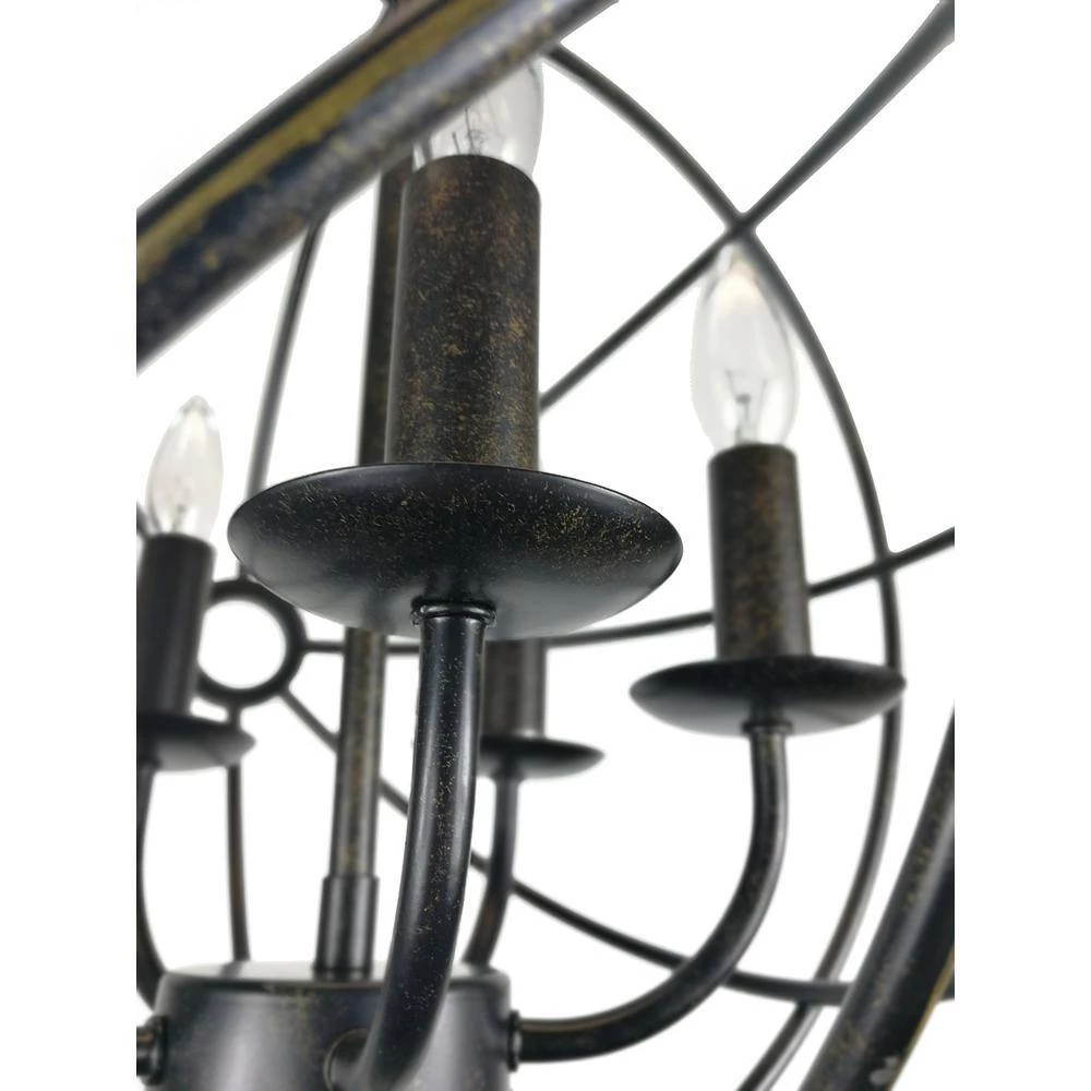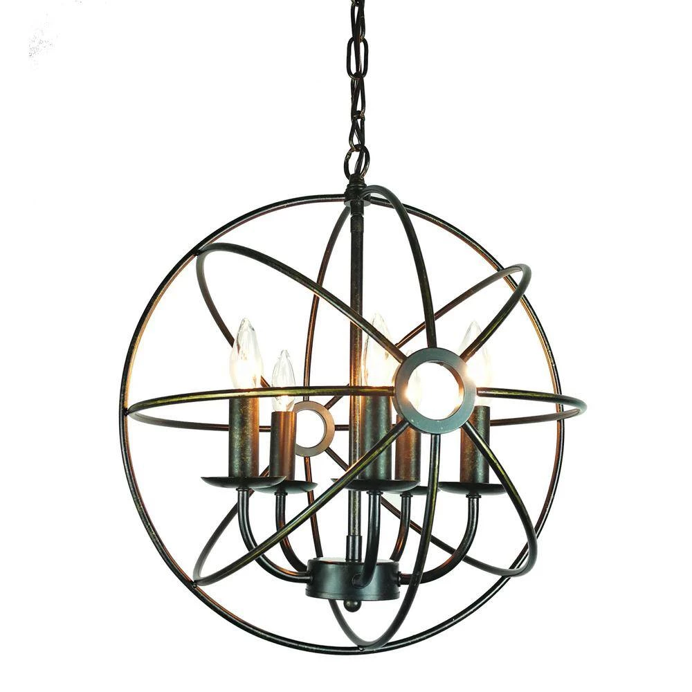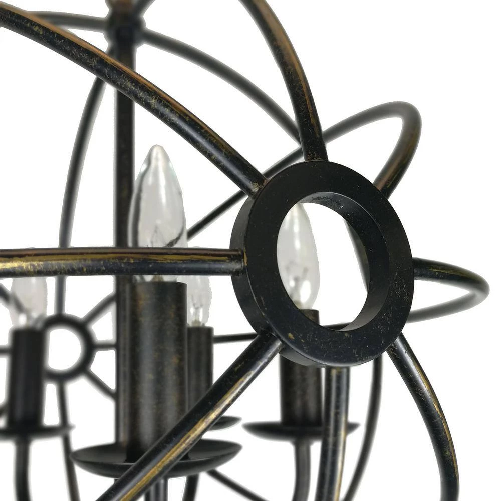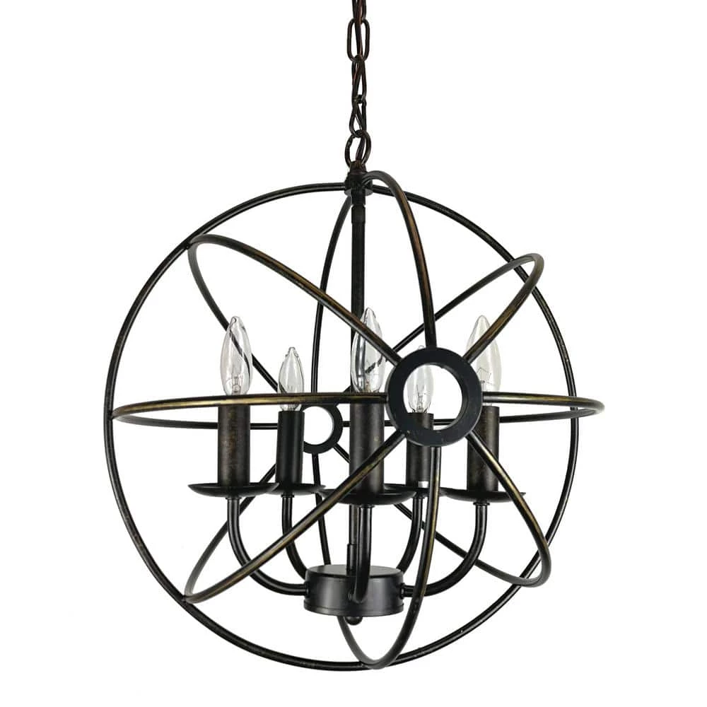 With a clean, symmetrical design, the Antique Bronze Globe Chandelier is an elegant entryway or living room centerpiece. Its antique bronze hardware utilizes fine gold accents and 5 candlelight bulbs to create a cozy, warm light. This sophisticated chandelier from Edvivi LLC comes with an adjustable 40 in. chain and adds depth and character to any room.