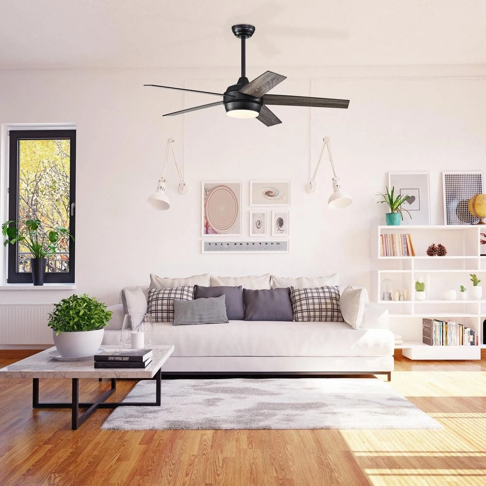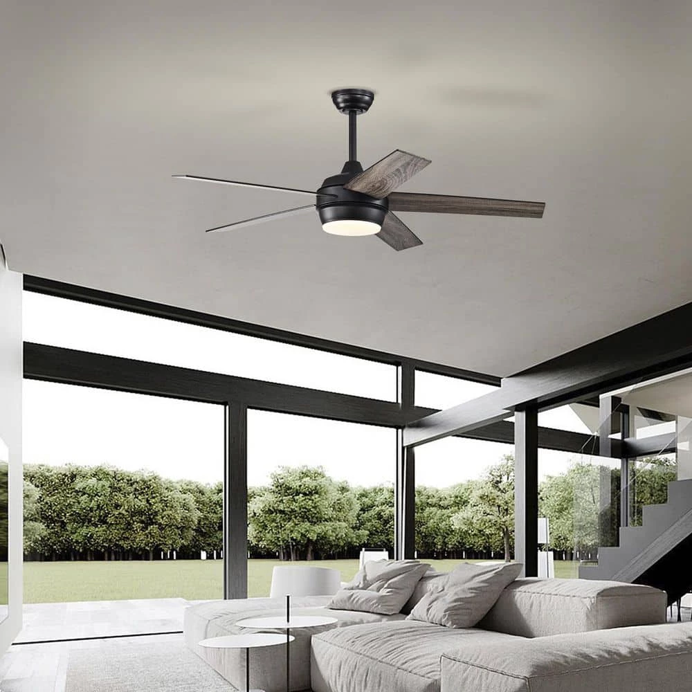Enjoy ideal comfort with a style that remains on-trend. With a matte black finish and textured oak blades, this simple ceiling fan enhances modern beauty. The integrated 24-Watt LED provides plenty of illumination while being eco-friendly and energy efficient. The included wall switch allows for an adjustment of 3 different speeds that will suit any desired airflow.