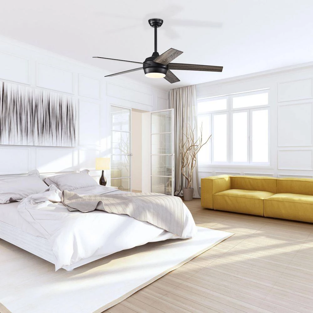- Matte black finish of this ceiling fan will complement a variety of interiors