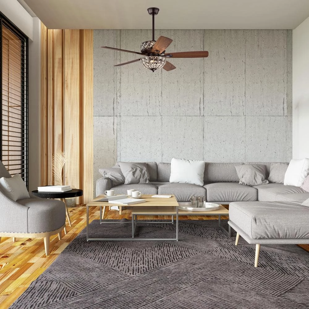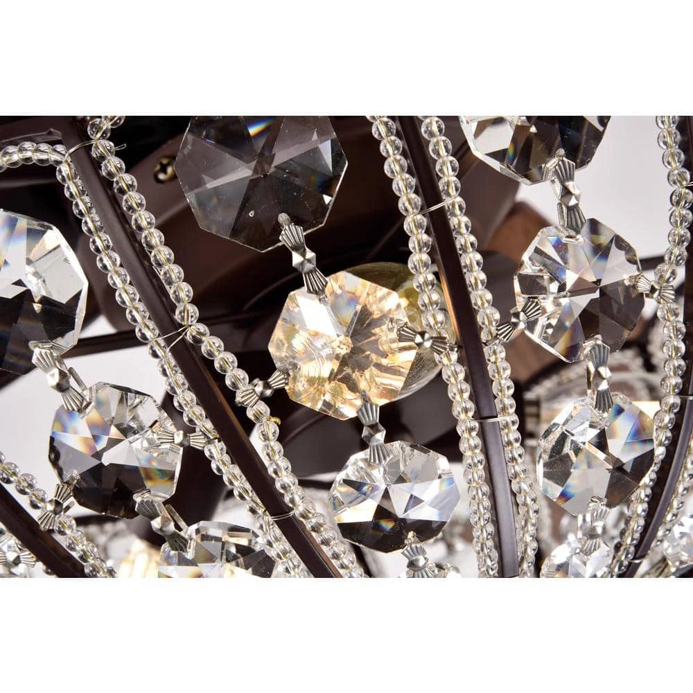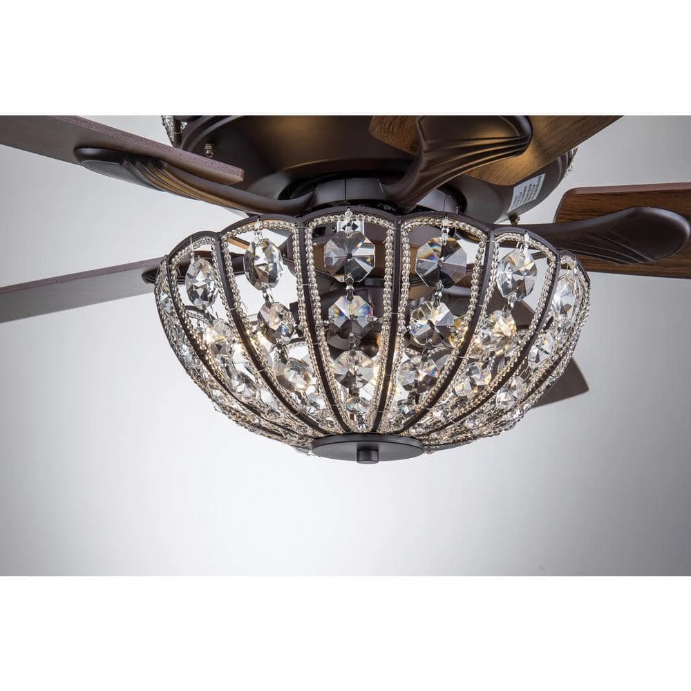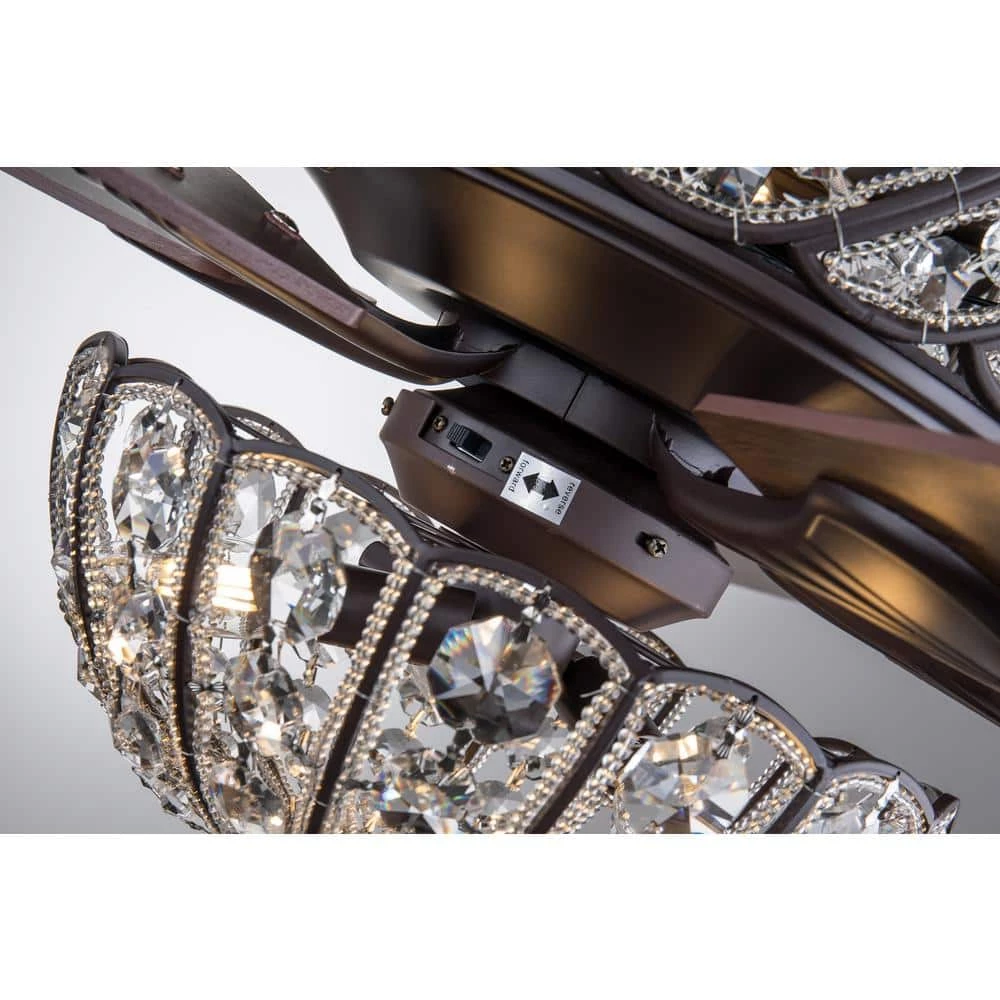 This oil rubbed bronze ceiling fan combines style and function to illuminate your home while providing comfortable air circulation. The crystal light kit is sure to catch attention with its fully encrusted crystal shade and elegant oil rubbed bronze finish in the living room or bedroom. The 5 black walnut and brown reversible blades of this traditional ceiling fan complement the light kit and move at 3 different speeds to suit any time of year.