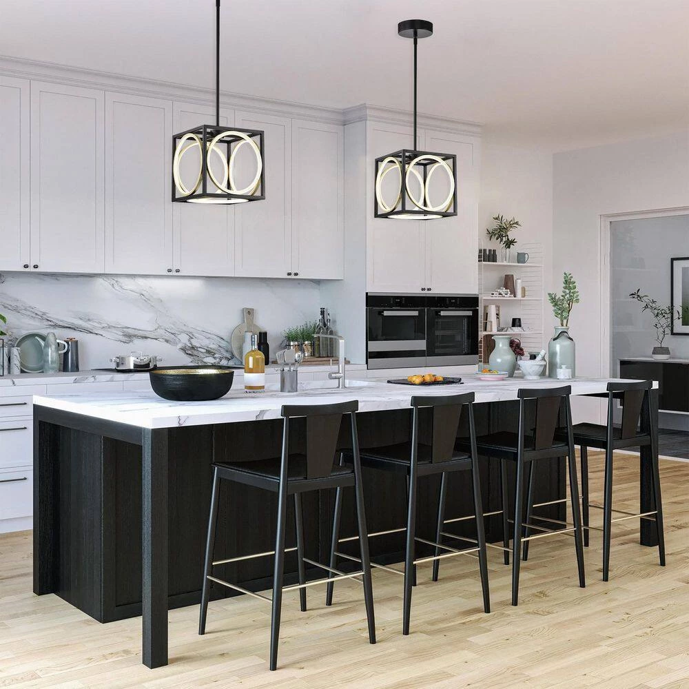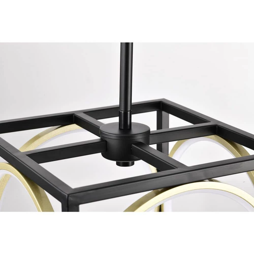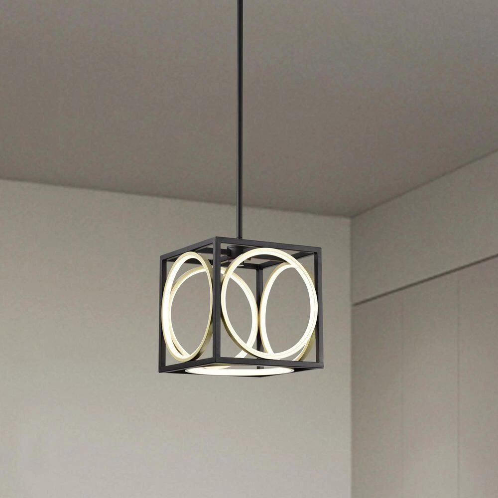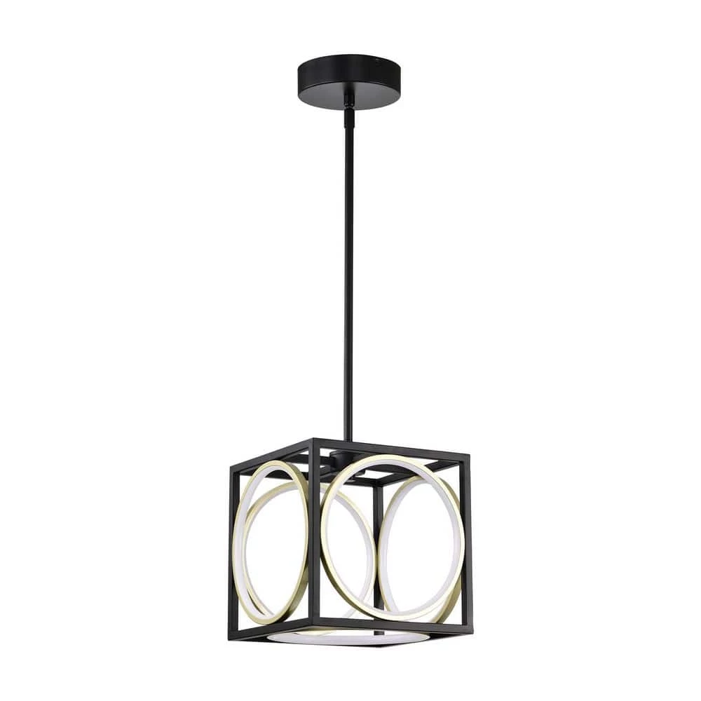 Create a modern atmosphere in the home with this geometric LED pendant light. This matte black and gold finish pendant light features a 24-Watt integrated LED light strip excellent for energy saving and cost efficiency while acting as an abundant light source. Place this light above the kitchen island, dining room, or home office to instantly update the room with modern style. For ease of installation, this contemporary pendant light comes with three 12 in. and one 6 in. rod that may be used separately or all together to create a custom hanging height perfect for any ceiling height or room size.