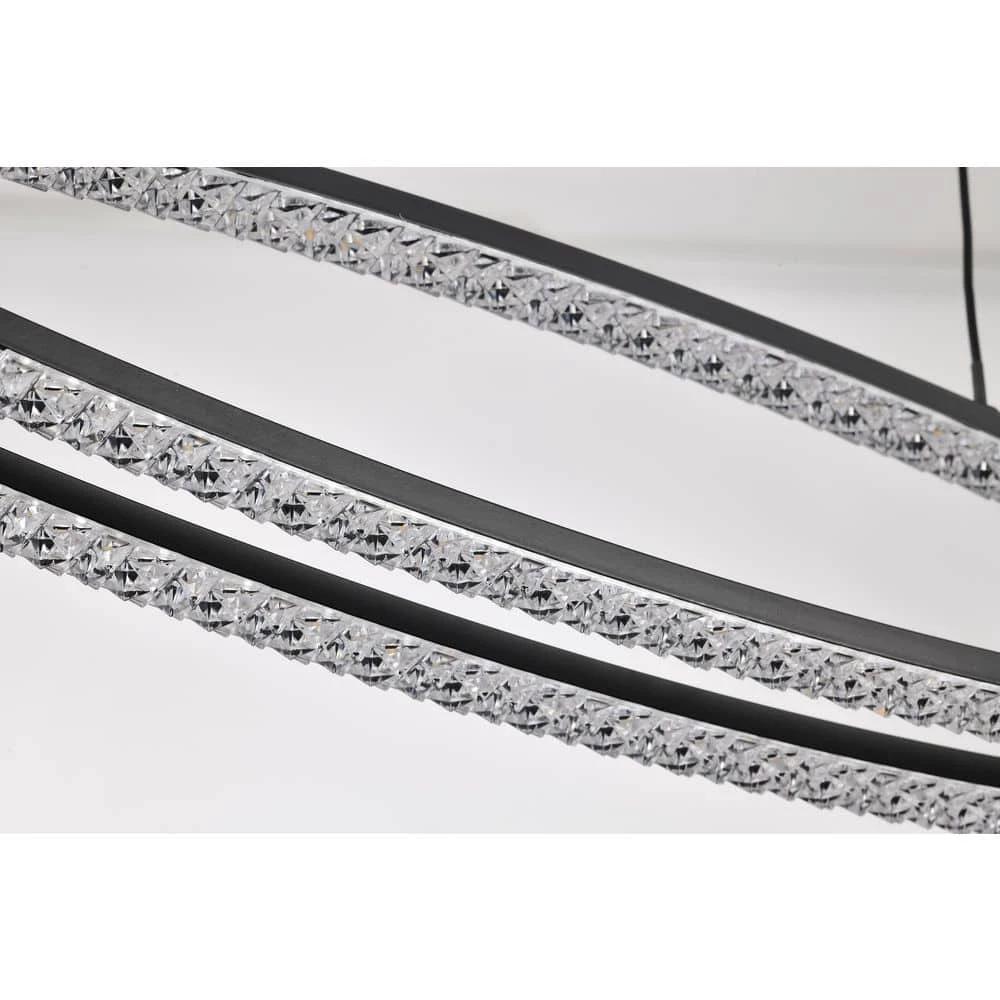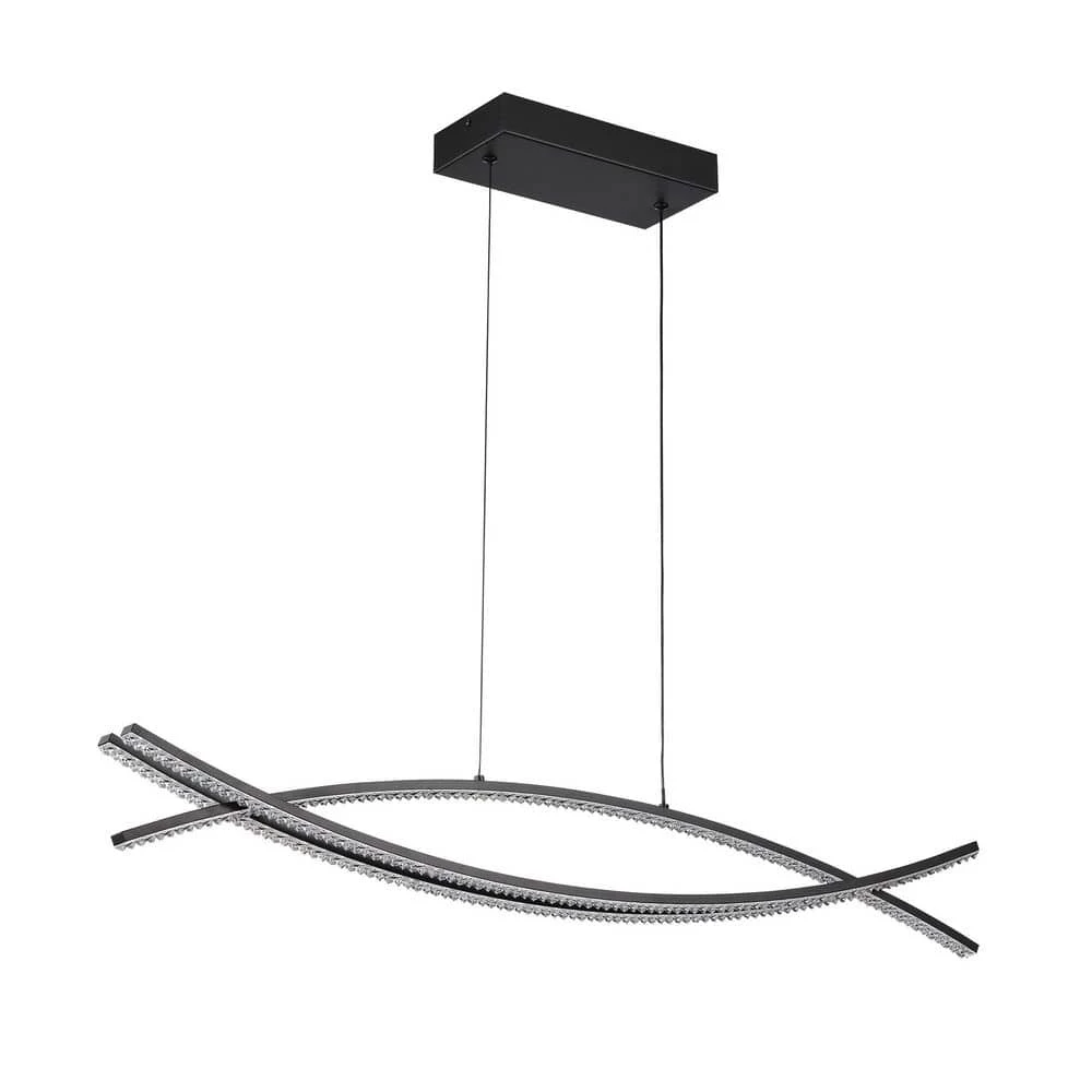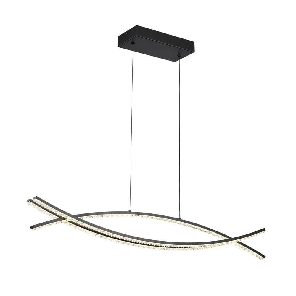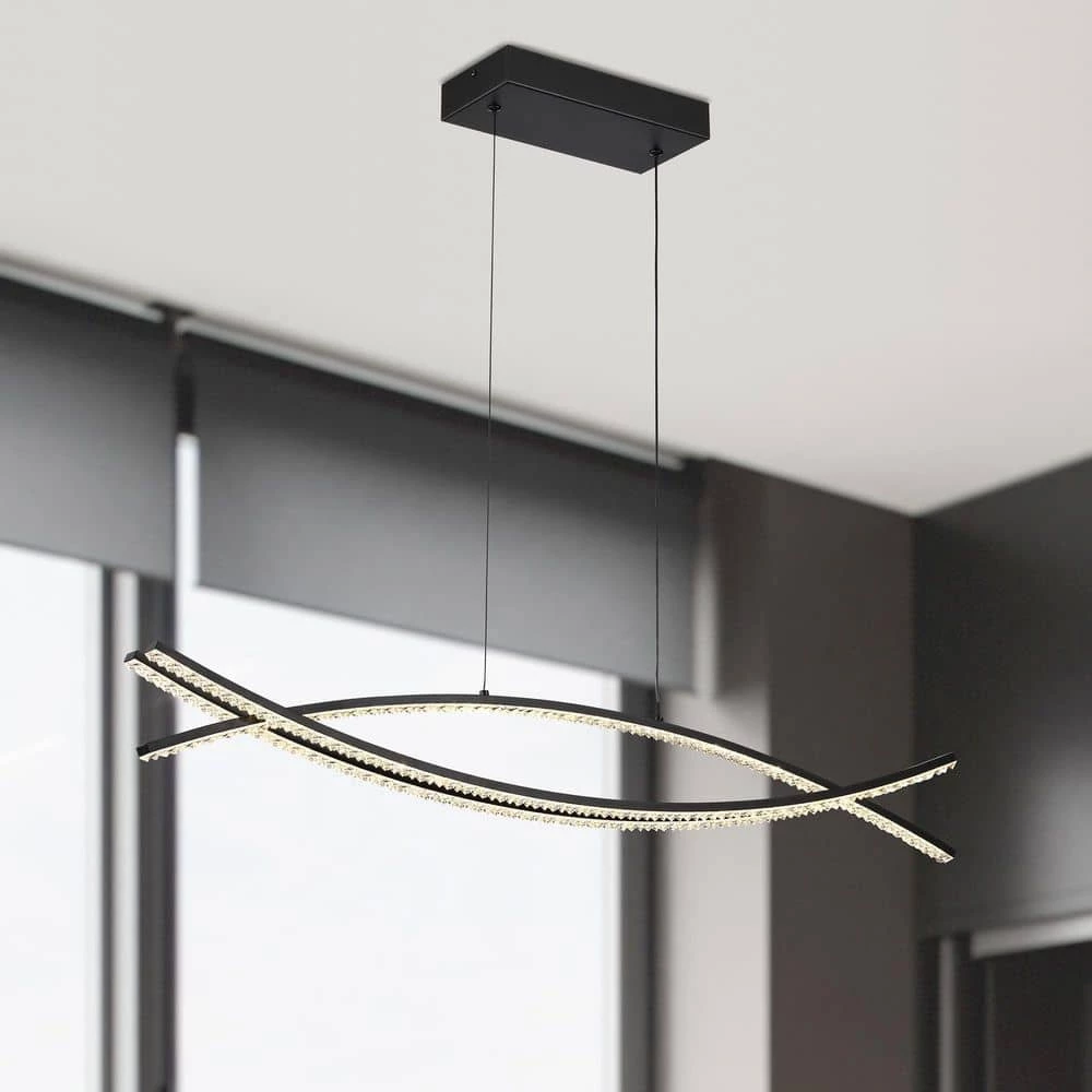 The acrylic encrusted curves and intertwined silhouette of this LED chandelier is sure to accentuate your space. Equipped with 30-Watt, 3000k color temperature LEDs, this chandelier emits bright illumination while preserving energy. Place this linear chandelier above the kitchen island, dining room, or living room to instantly update the home with modern appeal. For ease of installation, this chandelier comes with two adjustable 66.5 in. wires that may be shortened to suit a variety of ceiling heights or room sizes.