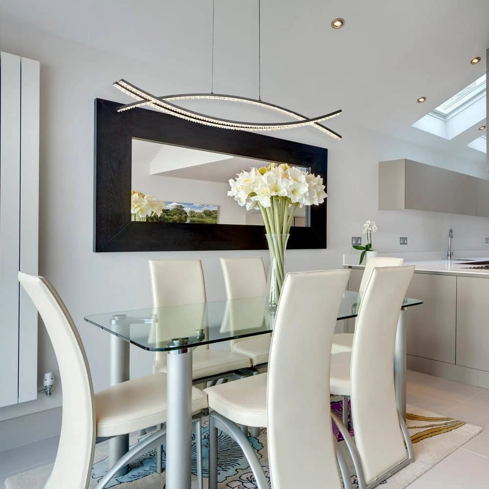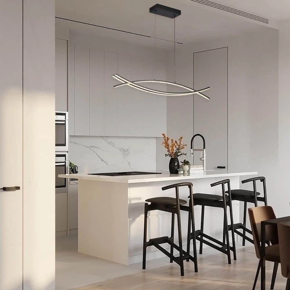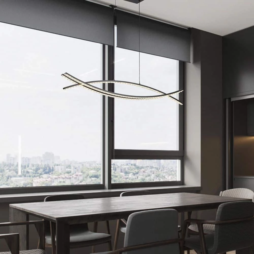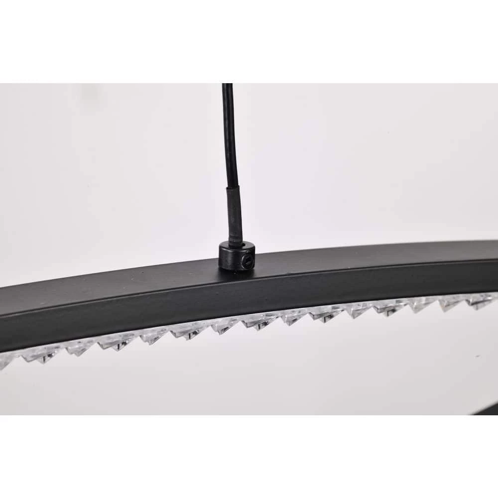 The acrylic encrusted curves and intertwined silhouette of this LED chandelier is sure to accentuate your space. Equipped with 30-Watt, 3000k color temperature LEDs, this chandelier emits bright illumination while preserving energy. Place this linear chandelier above the kitchen island, dining room, or living room to instantly update the home with modern appeal. For ease of installation, this chandelier comes with two adjustable 66.5 in. wires that may be shortened to suit a variety of ceiling heights or room sizes.