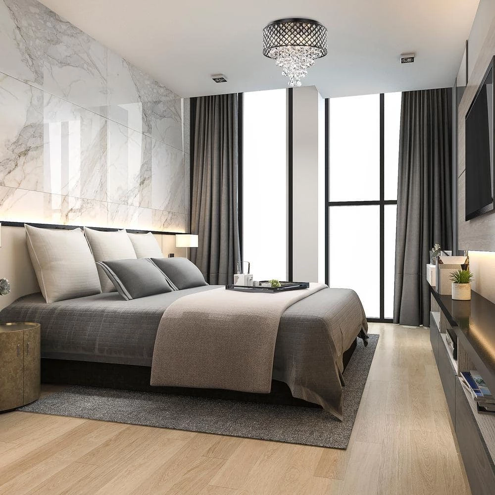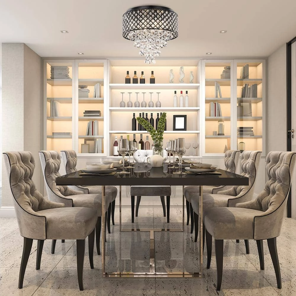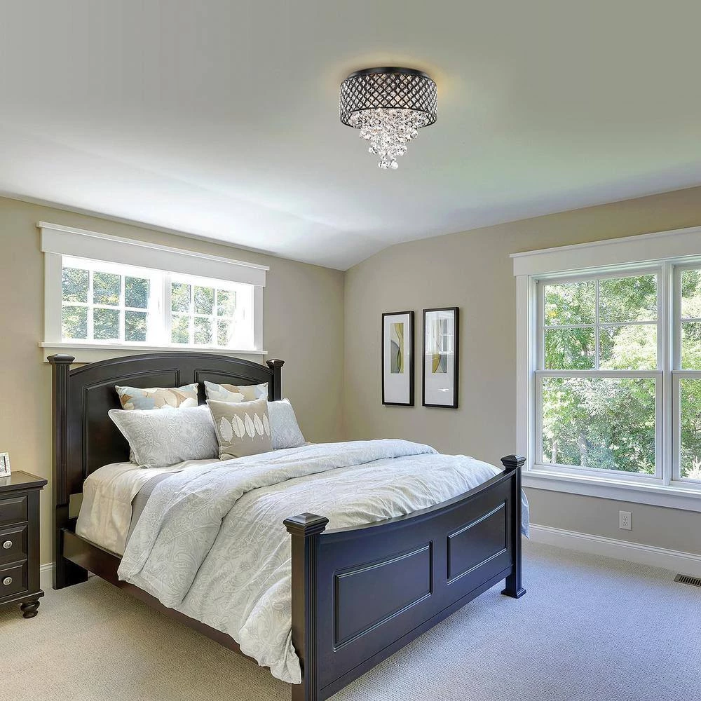 - Antique black finish crystal flush mount