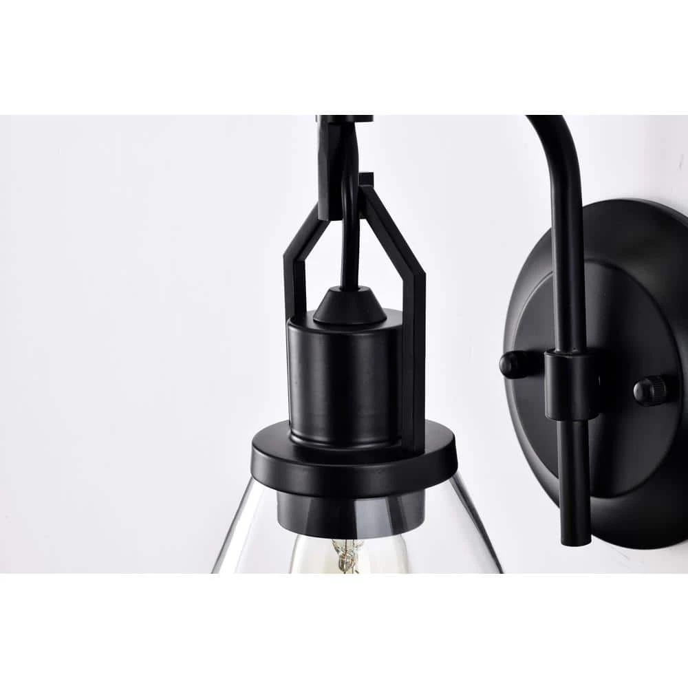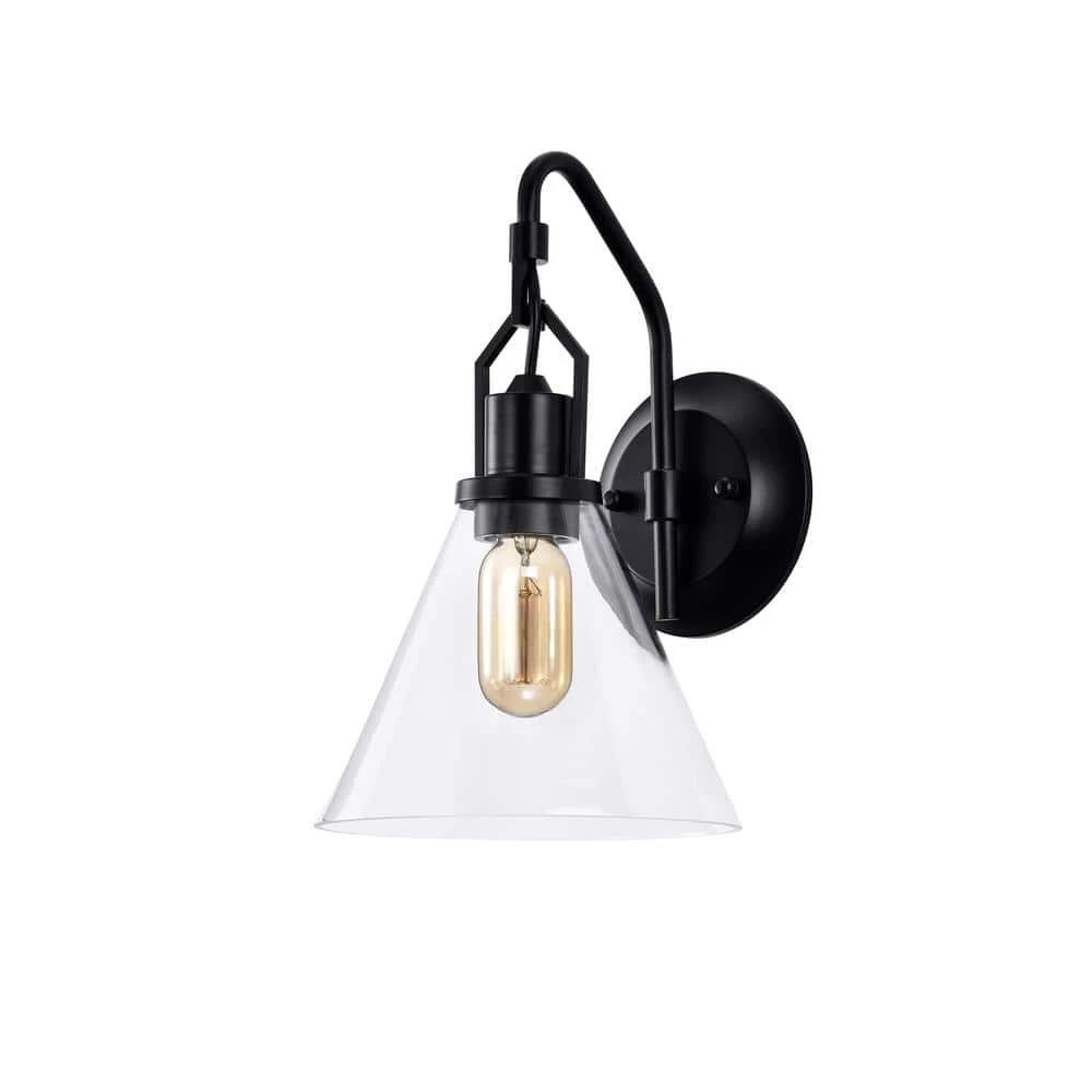 This modern indoor wall sconce features a sleek and minimalist design that instantly updates any space. Featuring a matte black finish and a clear glass cone shade, this wall light fixture is a versatile option to match any interior design. Place this hardwired wall light anywhere in the home that needs an extra bit of illumination such as the hallway, vanity, or bathroom.