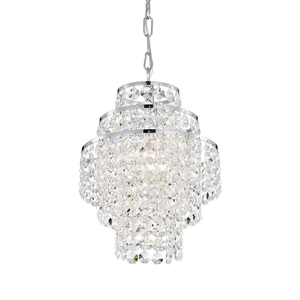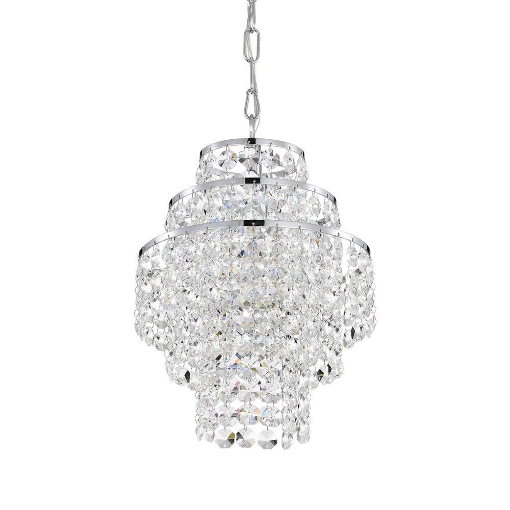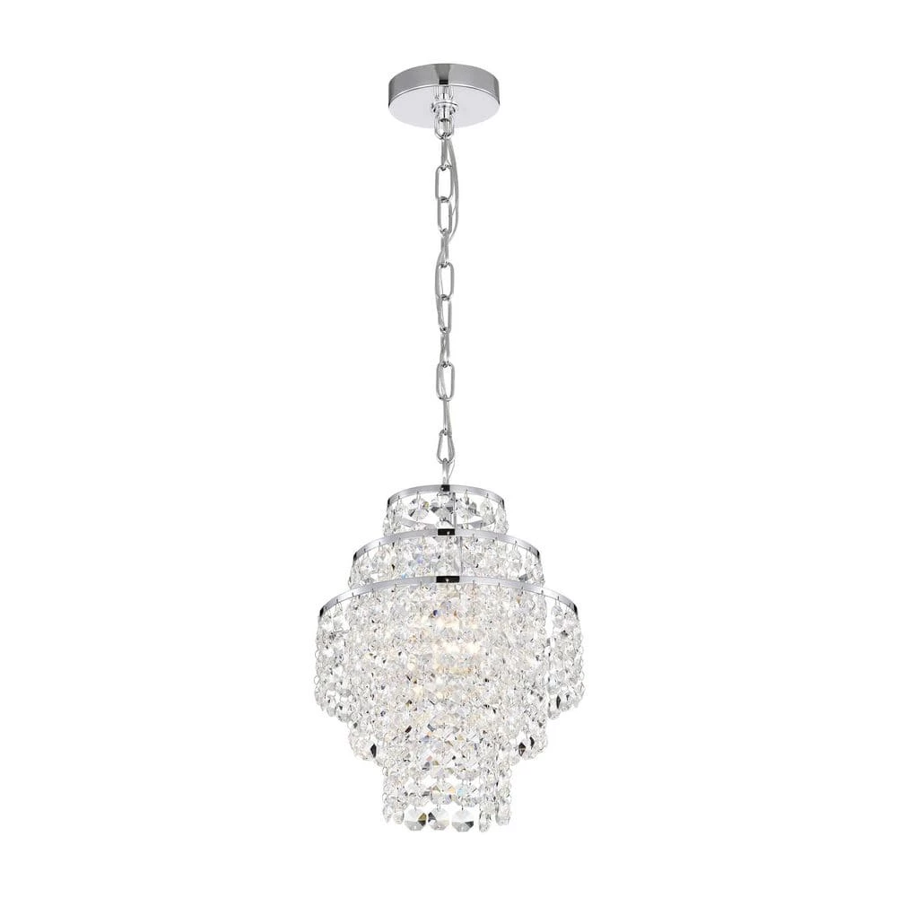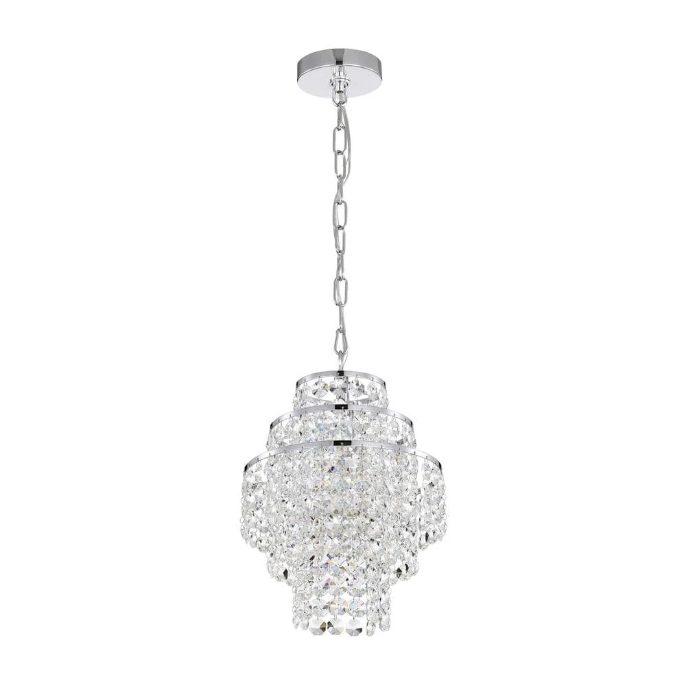 The Arietta 1-light mini chandelier has all the marvelous qualities of a grand crystal chandelier without taking up too much space. A nest of three rings with hanging crystal strands creates a beautiful tiered cascading design. Beneath the multi-faceted clear glass crystals, one E26 base bulb (not included) shines through. Place this light on its own or in multiples above the kitchen island, breakfast nook, or dining room as a source of light and home accent. The antique black finish of this mini chandelier is made to complement a variety of home interiors. Hanging from an adjustable 40 in. chain, this light is also compatible with a dimmer switch and dimmable bulbs.