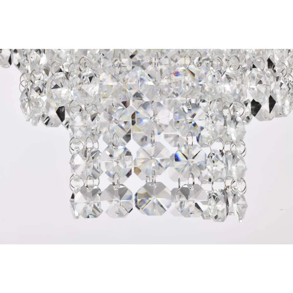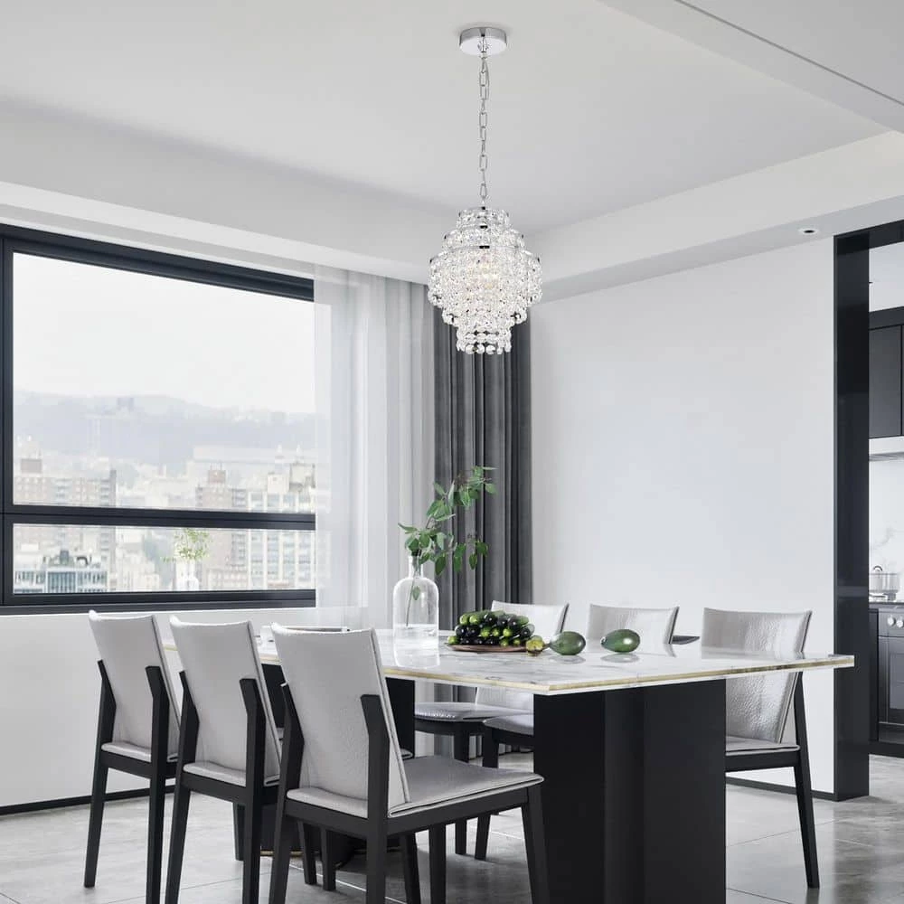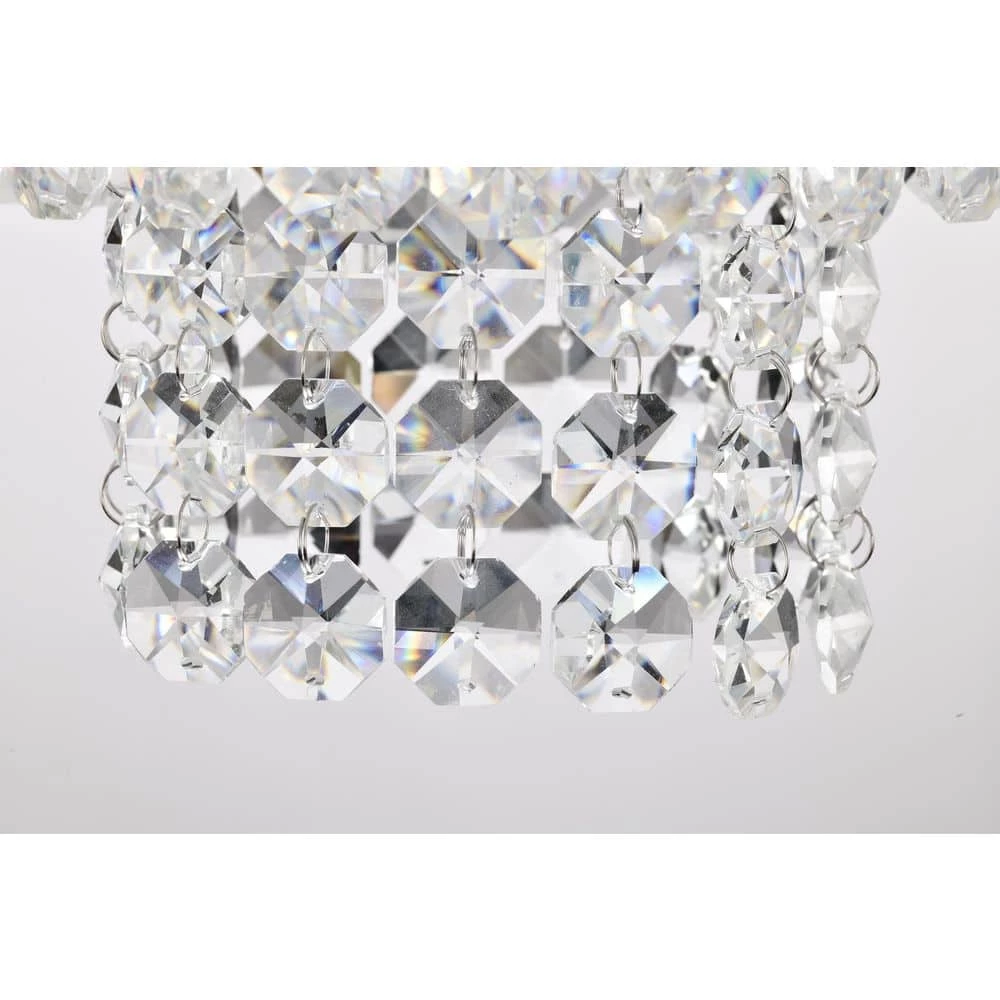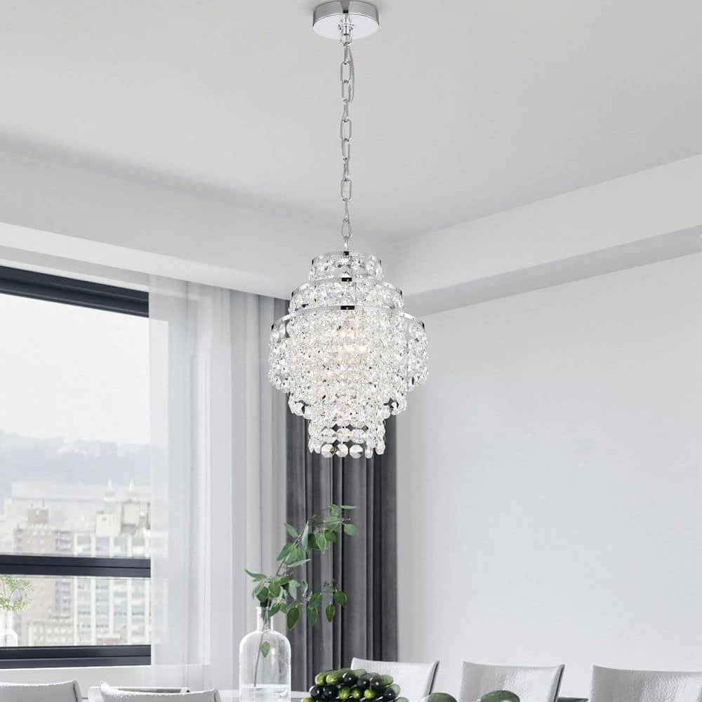 The Arietta 1-light mini chandelier has all the marvelous qualities of a grand crystal chandelier without taking up too much space. A nest of three rings with hanging crystal strands creates a beautiful tiered cascading design. Beneath the multi-faceted clear glass crystals, one E26 base bulb (not included) shines through. Place this light on its own or in multiples above the kitchen island, breakfast nook, or dining room as a source of light and home accent. The antique black finish of this mini chandelier is made to complement a variety of home interiors. Hanging from an adjustable 40 in. chain, this light is also compatible with a dimmer switch and dimmable bulbs.