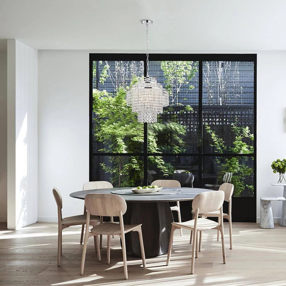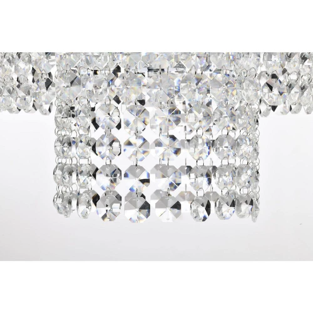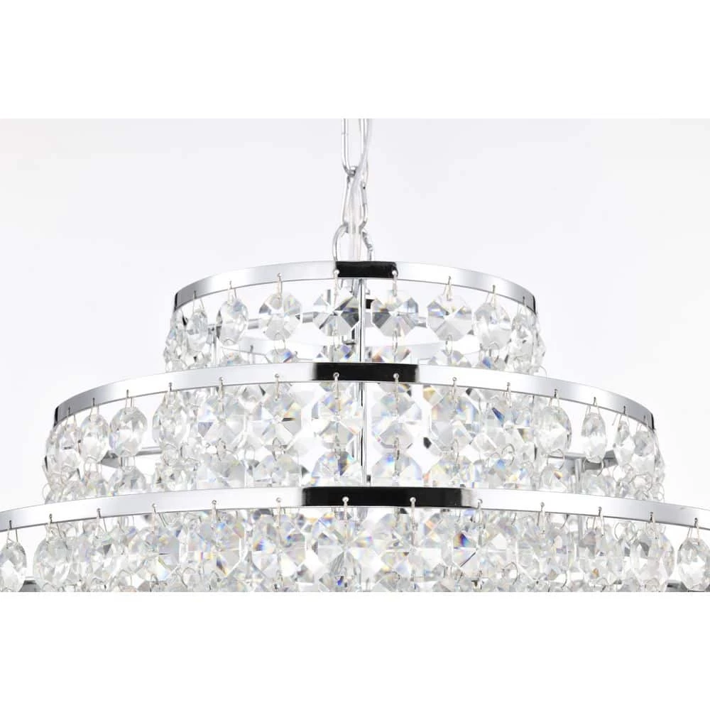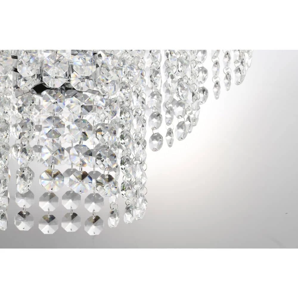 Send sparkles all throughout your home with this stunning 4 light tiered crystal chandelier. The unique silhouette of this chandelier features a nest of rings that form tiers of cascading crystal strands. Beneath the gorgeous array of reflective crystals are four E12 candelabra bulbs (not included) that emit a soft, ambient glow. Place this modern chandelier in the entryway to grab the attention of your guests, or above the dining room to illuminate special gathering moments. For ease of installation, this chandelier comes with a 40 in. adjustable chain that may be shortened to suit a variety of different ceiling heights and room sizes. We recommend adding a dimmer switch to set the mood accordingly.