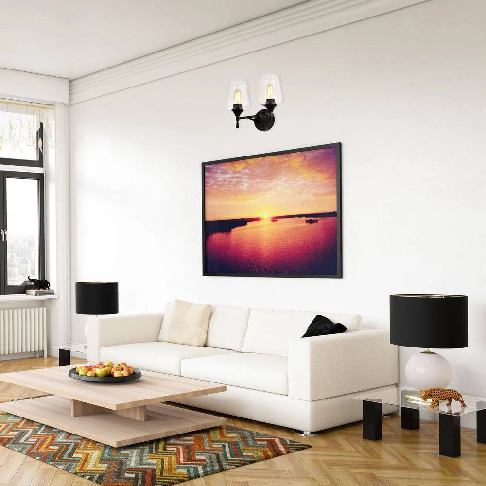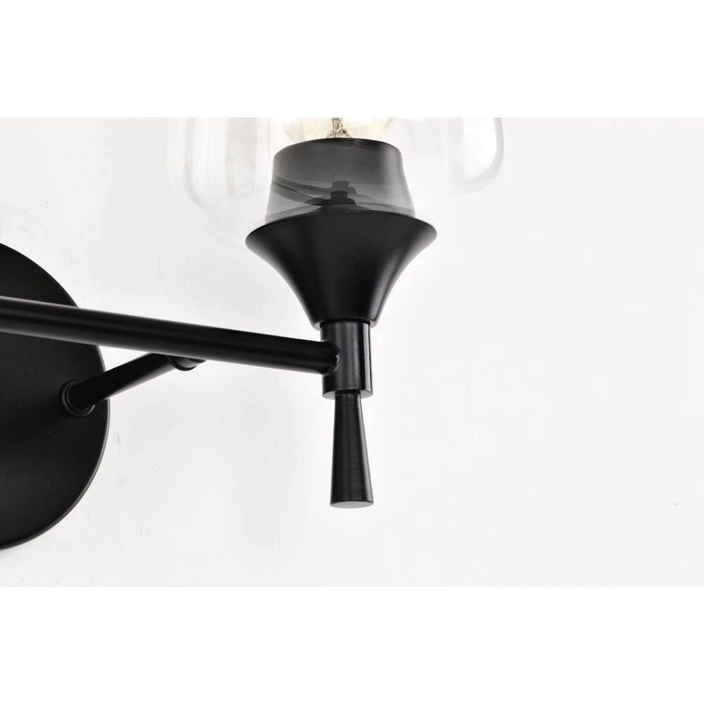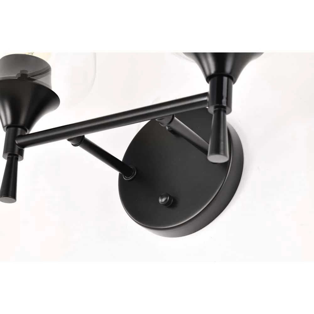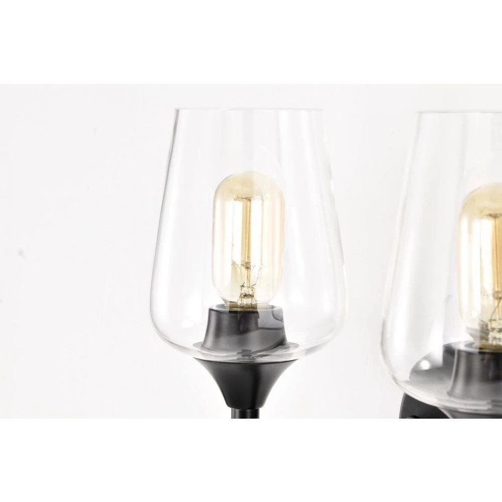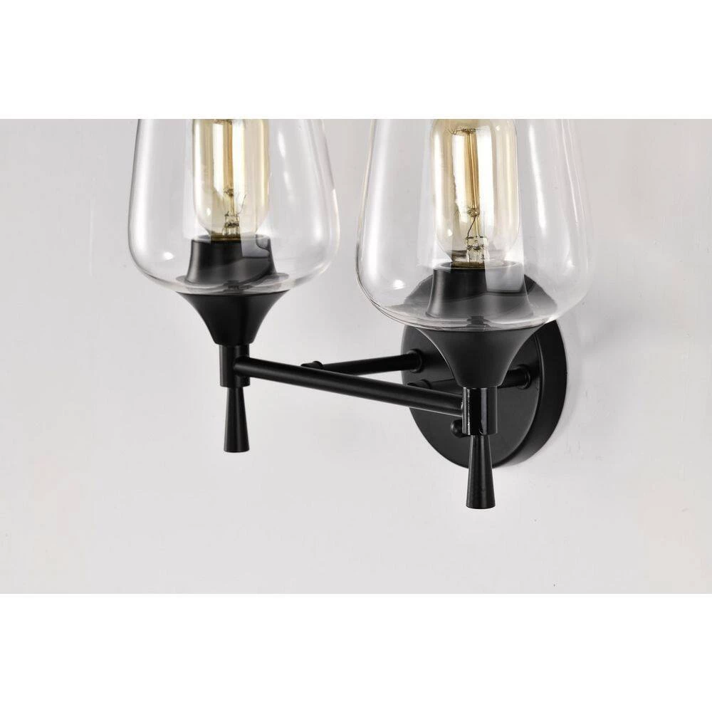 Transform the ambiance of your bathroom with this contemporary 2-light vanity. With its sleek design and unique silhouette, this modern vanity light features a versatile matte black finish and clear wine glass shades that bathe the room in illumination. Place this light above the bathroom mirror to complement the rest of your decor. This light takes 2 medium base bulbs, not included. We recommend adding a dimmer switch with dimmable bulbs to set the mood accordingly.