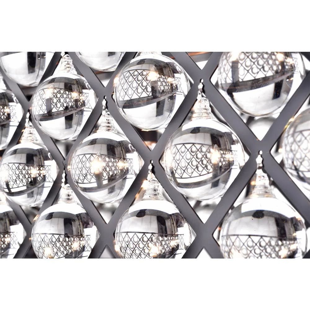 - Lattice shade features crystal spheres that reflect light to cast sparkles throughout the home