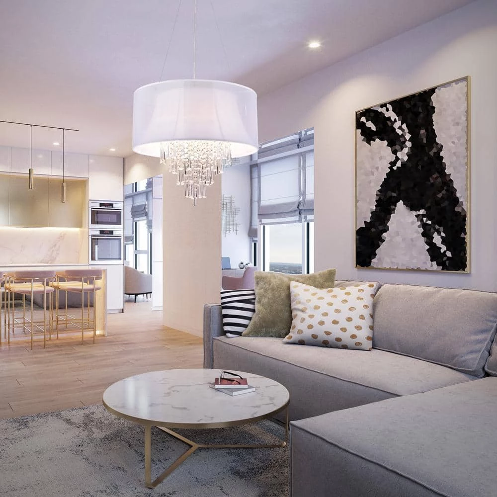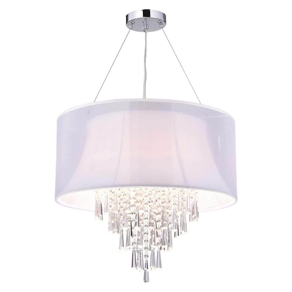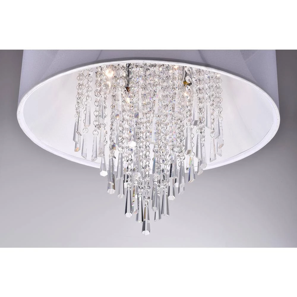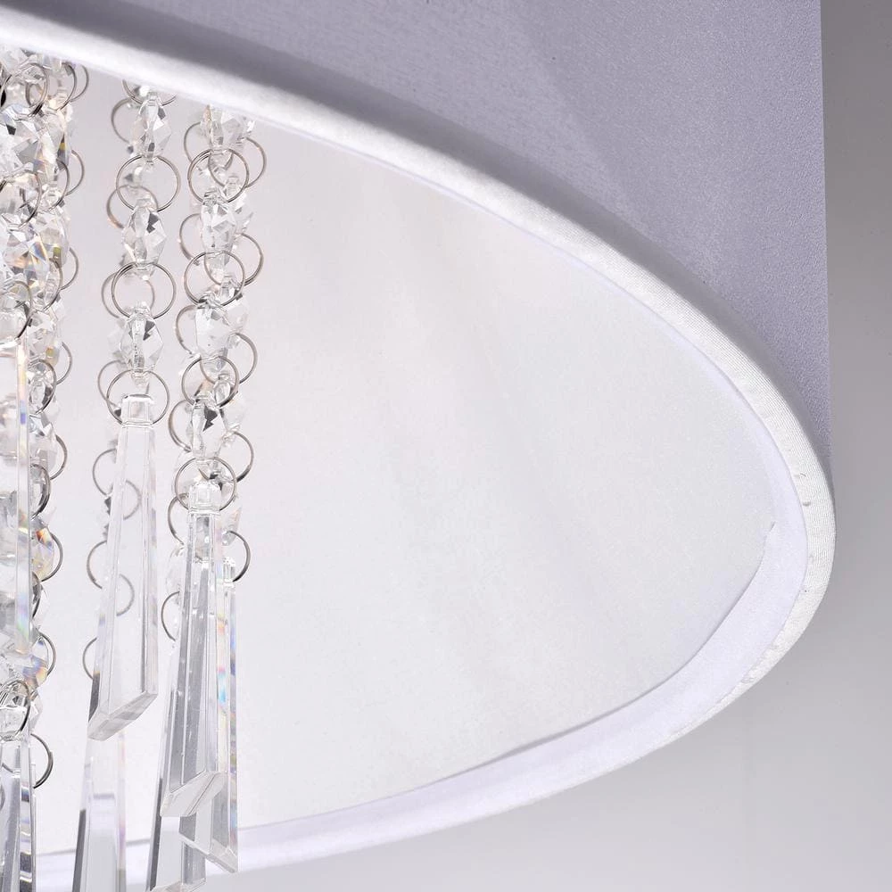 Beyond brightening your abode, chandeliers make a statement in any interior design without occupying valuable floor space. This drum flush mount, for example, is the perfect pick for any glam-inspired aesthetic with its real crystal accents dangling from the metal frame. This modern flush mount showcases a large drum shade made from fabric awash in white for increased ambiance, and measures 18.5 in. H x 20 in. W x 20 in. D. This chrome flush mount accommodates four 60-Watt incandescent or LED light bulbs (not included).