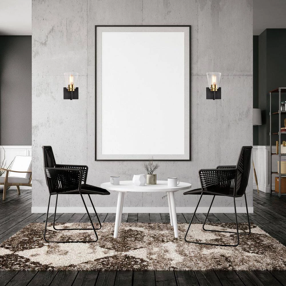 - Black and antique brass finish indoor wall sconce