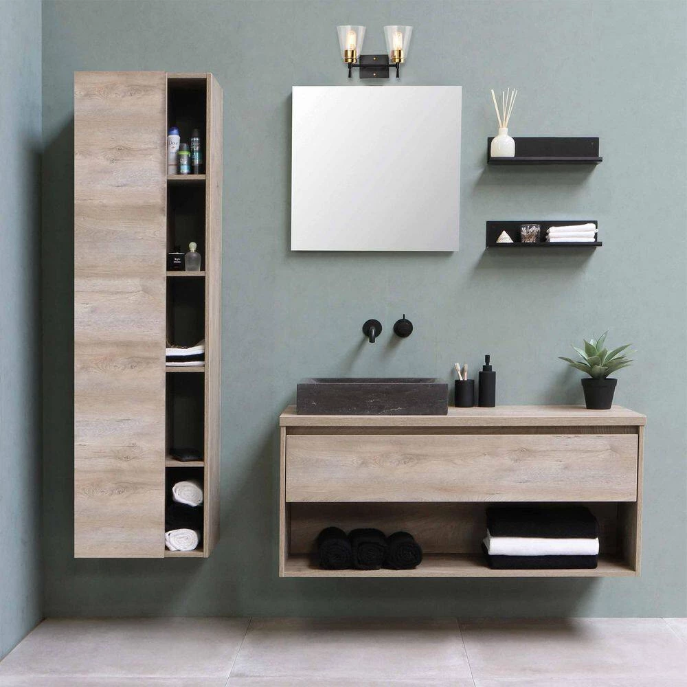 - Featuring black and antique brass finish, this vanity adds an updated look to any room