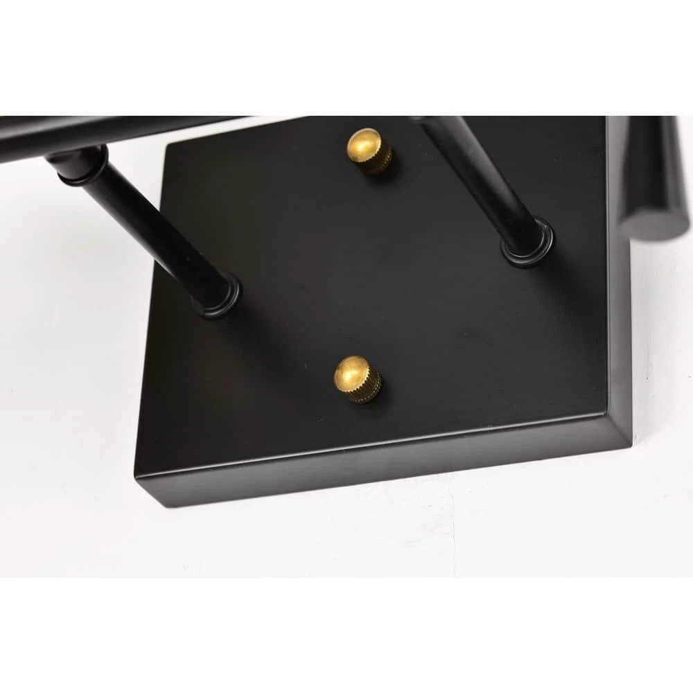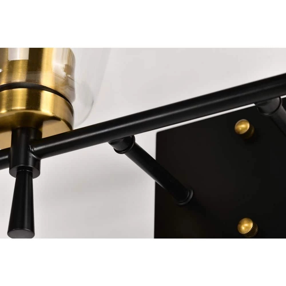 - Featuring a black and antique brass finish, this modern vanity has a timeless look