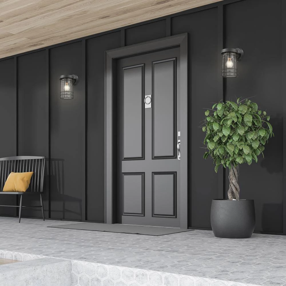 Create a welcoming glow in front of your home with our classic outdoor wall sconce. This beautiful wall lantern combines black metal with clear glass to create a warm, friendly first impression. Perfect for porches, the front door, and patios. The cage design adds an eye-catching design element to this transitional wall light. The open bottom allows you to easily change bulbs while the black finish fits into any design plan.