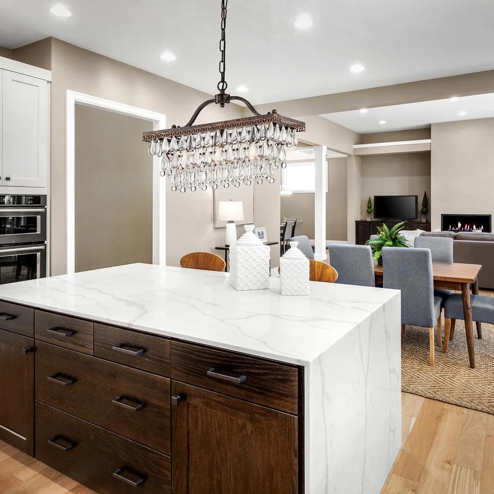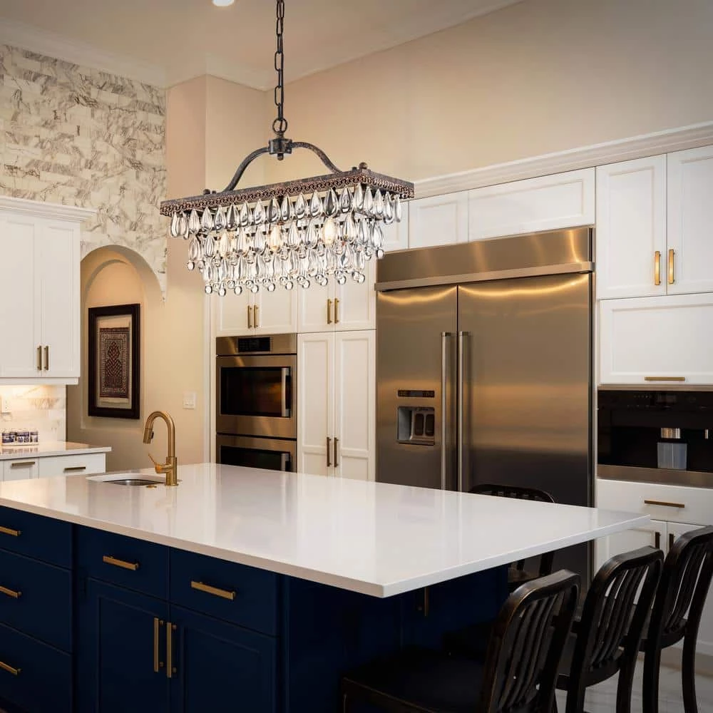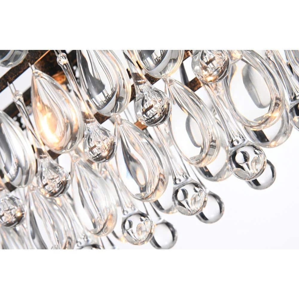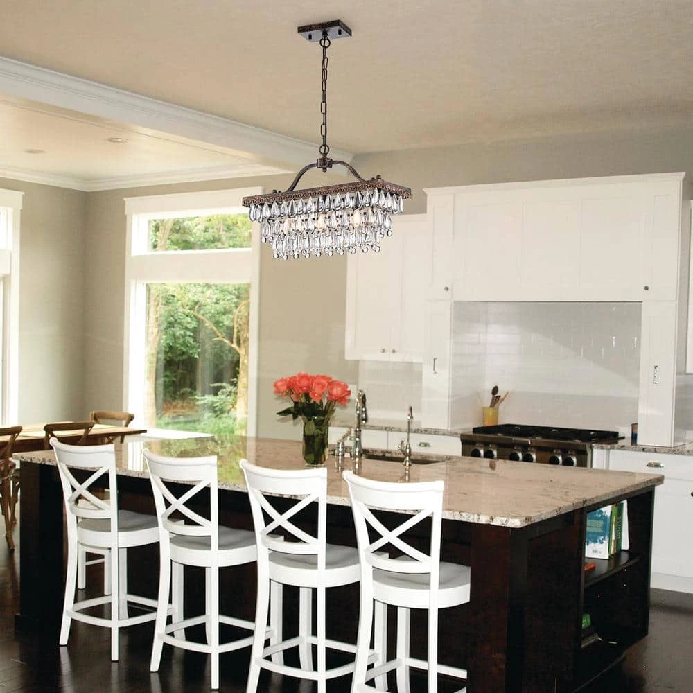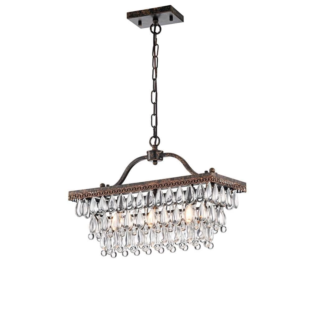 This smaller version of our most popular Chiara line is the perfect addition to a breakfast nook or a smaller dining room and kitchen. Opulent and glamorous, this crystal chandelier adds beauty to any room. The antique bronze hardware gives it an vintage feel that is traditional yet contemporary. This linear chandelier makes a statement and adds drama with its 4 rows of cascading teardrop crystals that filter the 3 lights and brighten the room. This modernchandelier comes with a 40 in. chain that may be shortened by removing some links, perfect for any room size or ceiling height.