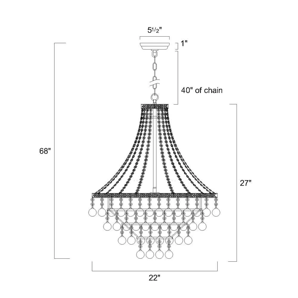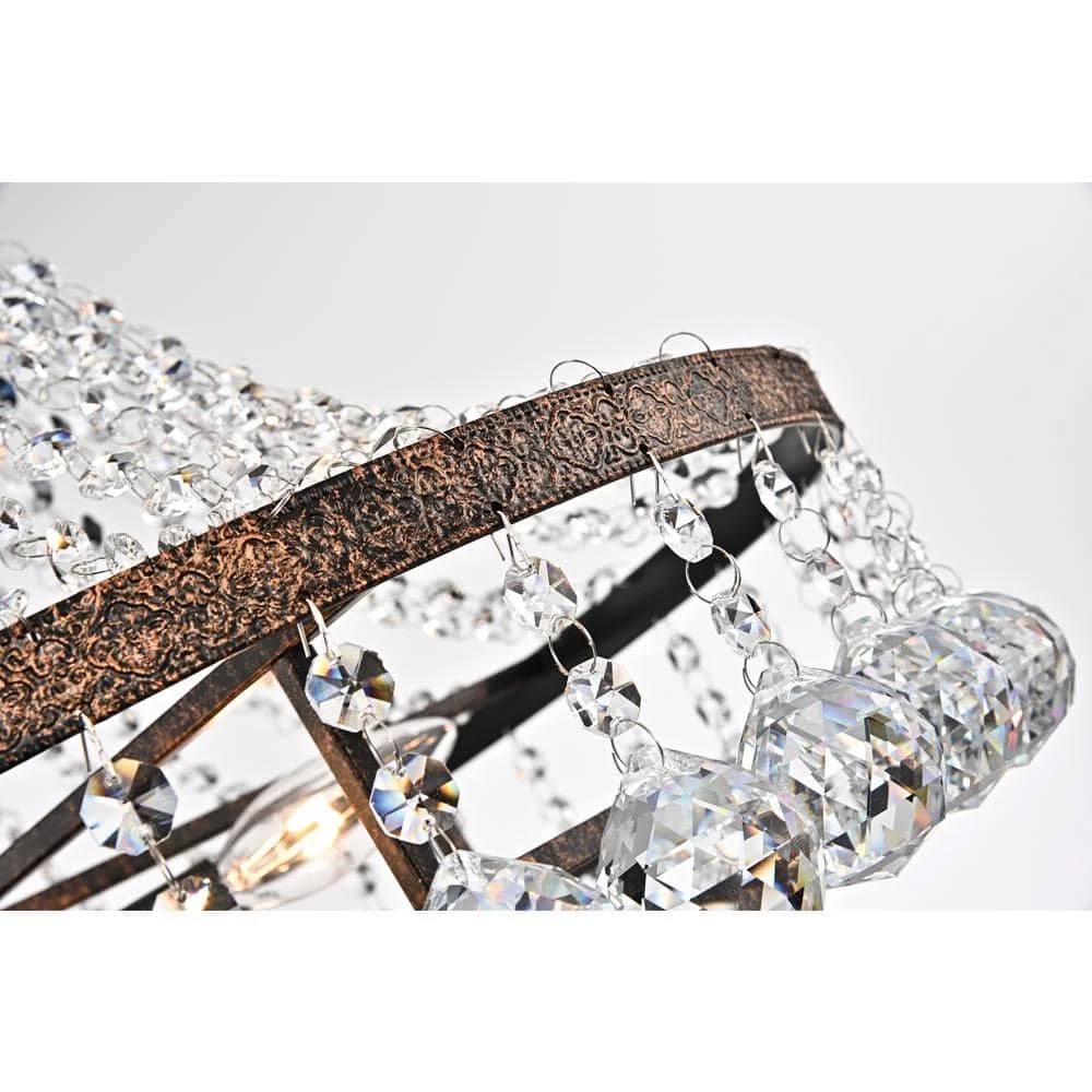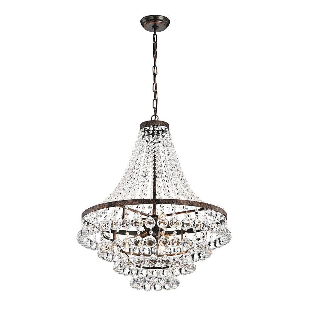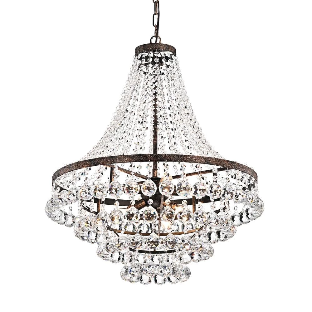 This dazzling 4-tier empire chandelier creates a focal point in your space. The filigree detailing on the antique copper bands add elegance to this stunning crystal chandelier. The layers of multi-faceted clear glass crystals make this piece stand out. This ceiling light fixture comes with a 40 in. chain that can be adjusted by removing links.