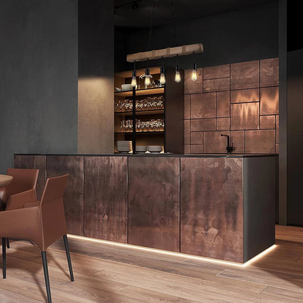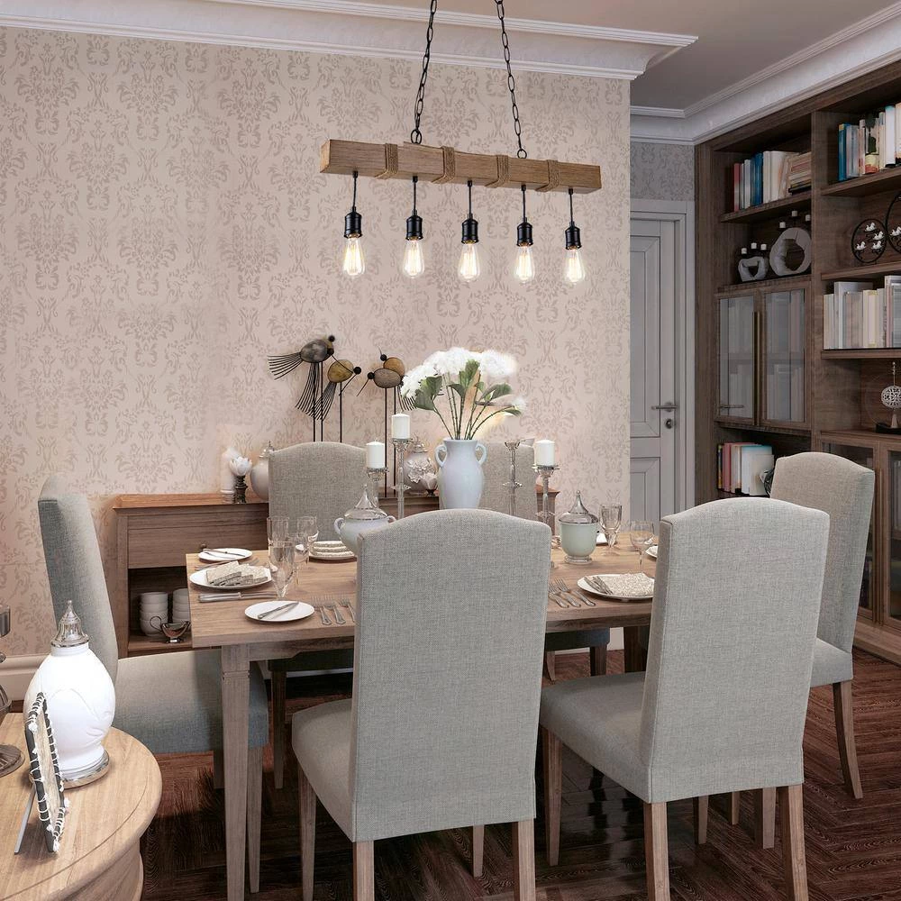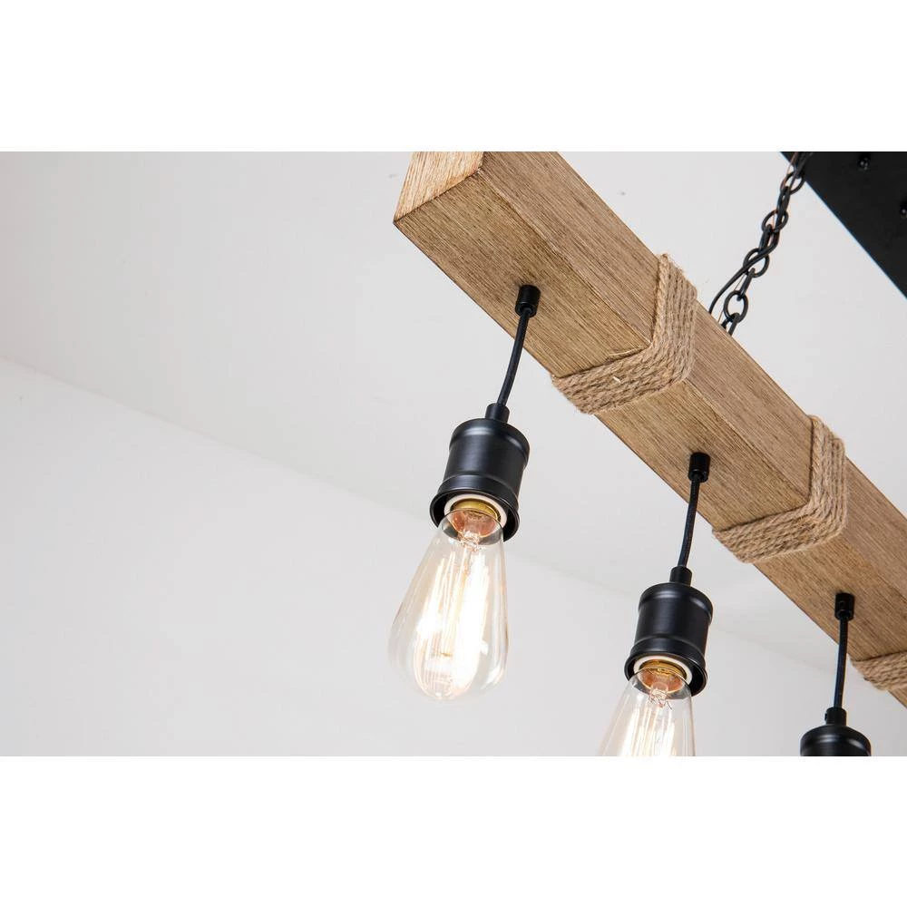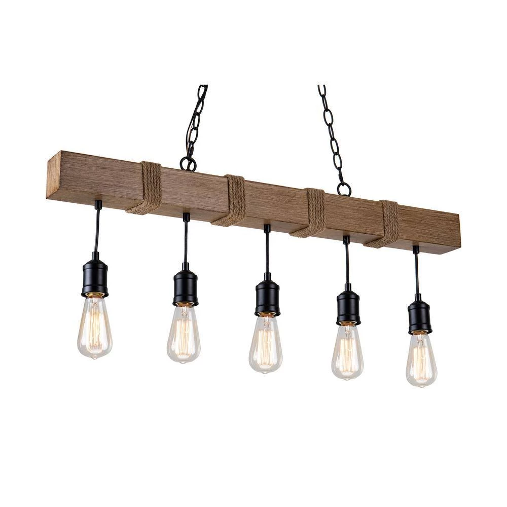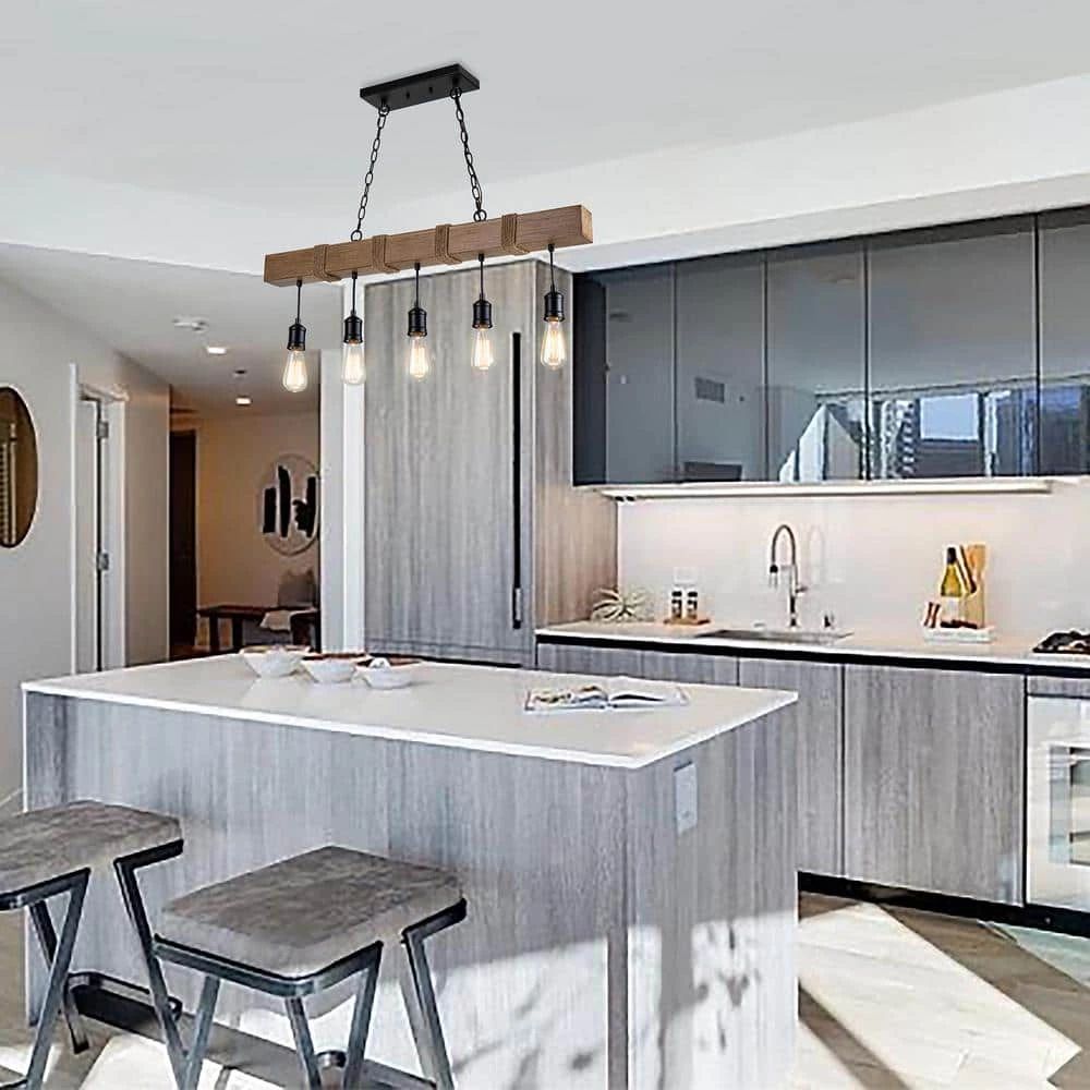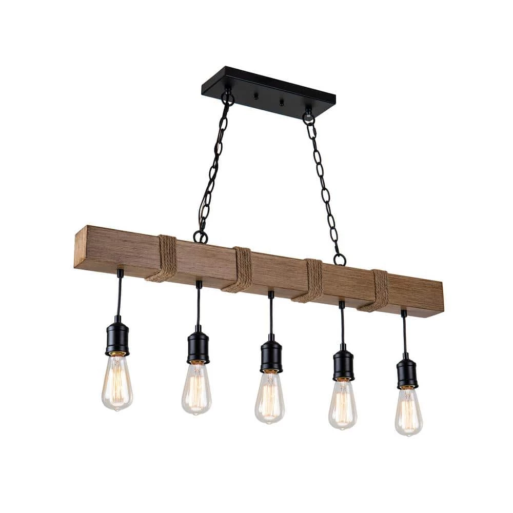 This industrial chandelier features clean lines and a minimalist silhouette that fits perfectly into today’s design trends. The wood finish of this linear chandelier gracefully complements the black detailing and exposed bulbs. The 48 in. chain of this farmhouse island light is adjustable and we always recommend adding a dimmer switch for even more customization.