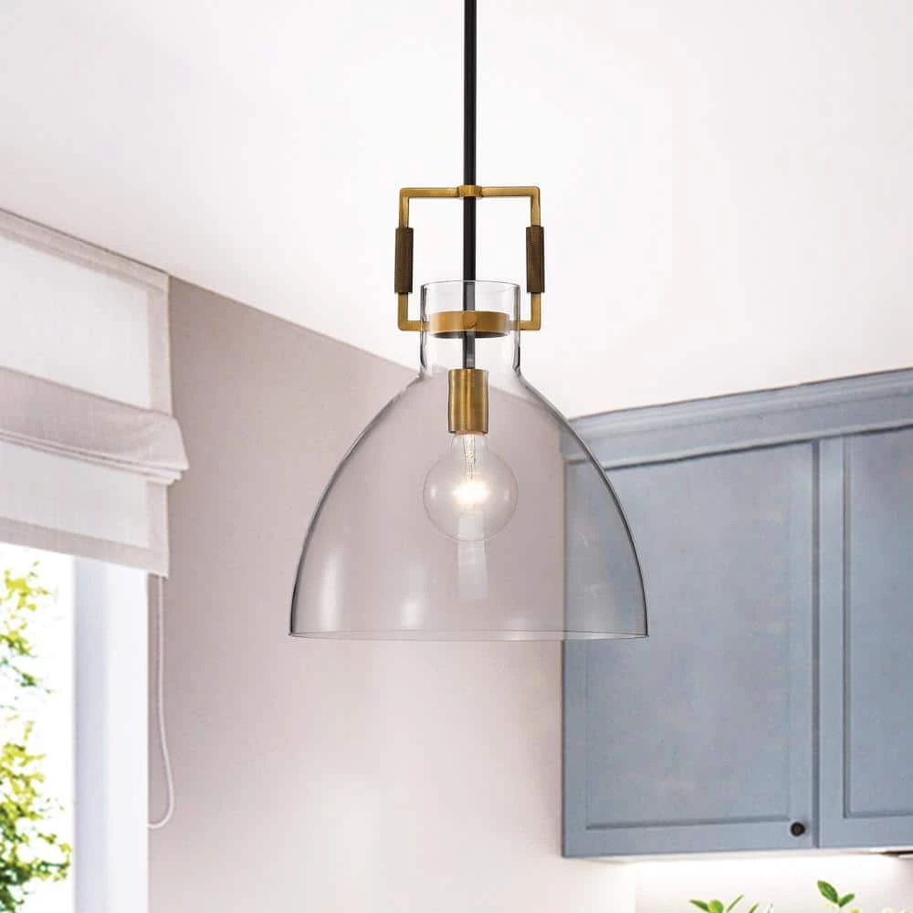 Upgrade your home with the simplicity of our bowl shaped 1-light pendant. Crafted with fine detail, this modern pendant light features a clear glass shade paired with antique gold hardware for a touch of vintage flair. Perfect above your kitchen island or dining table, the contemporary elements of this ceiling light provide a timeless quality.