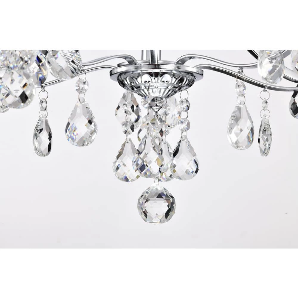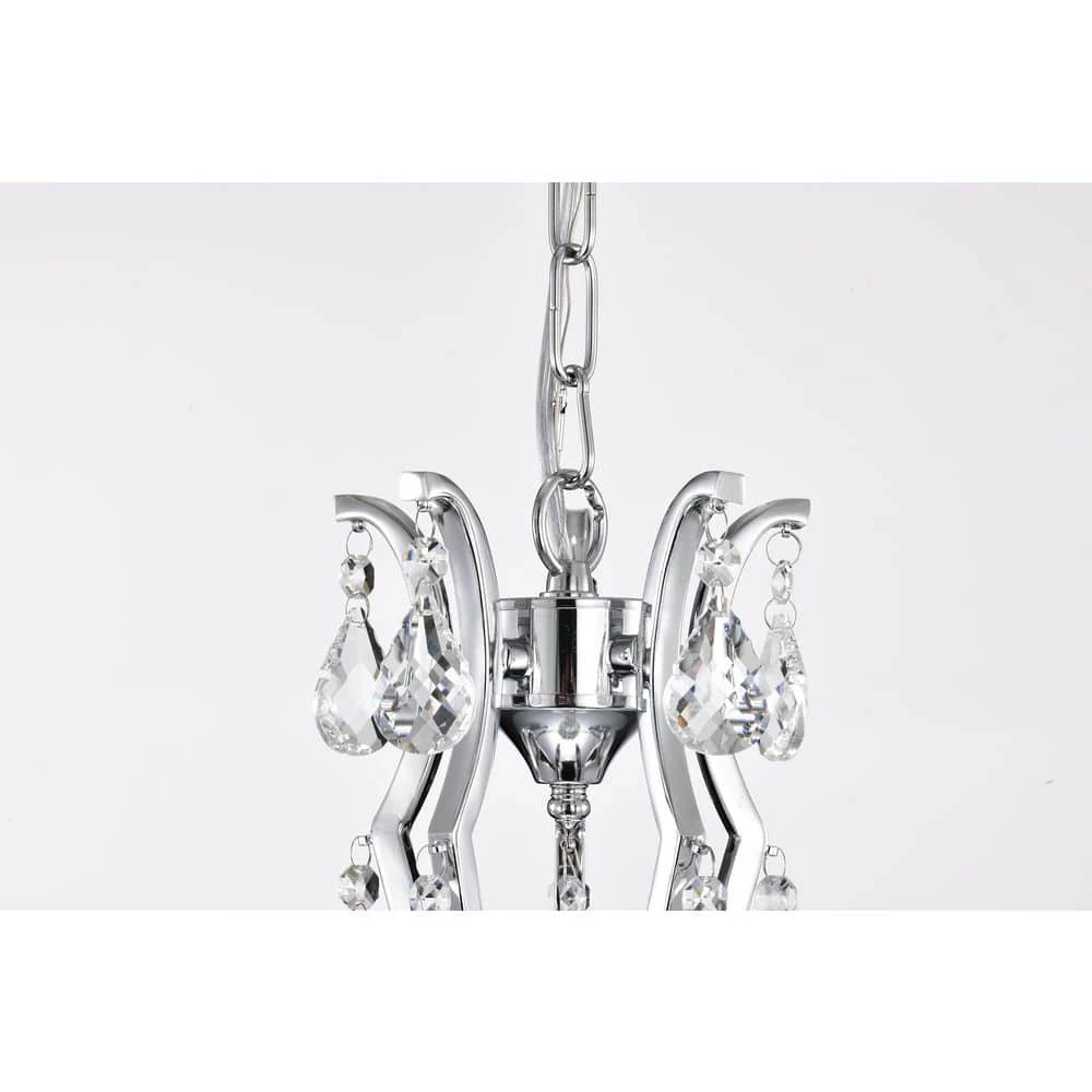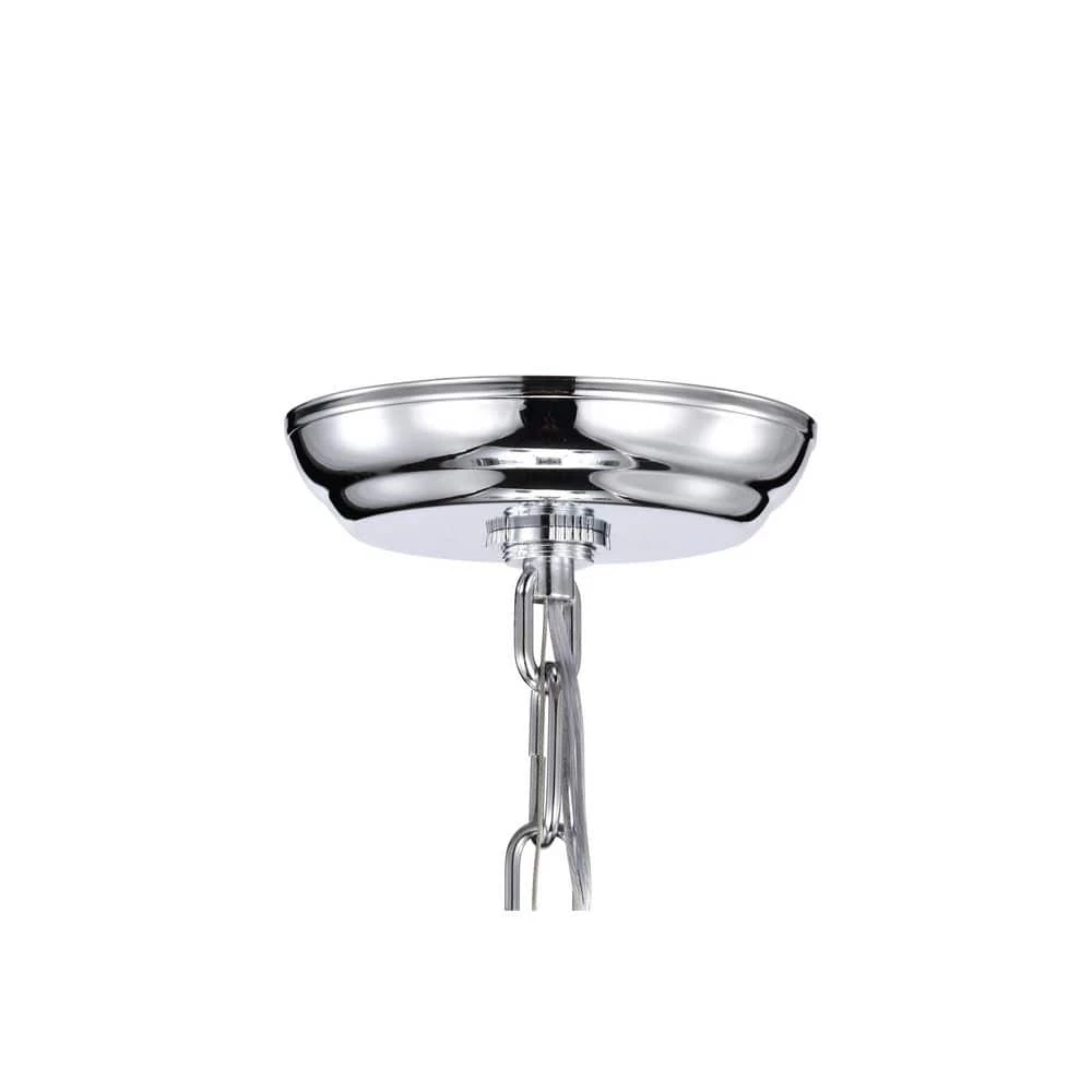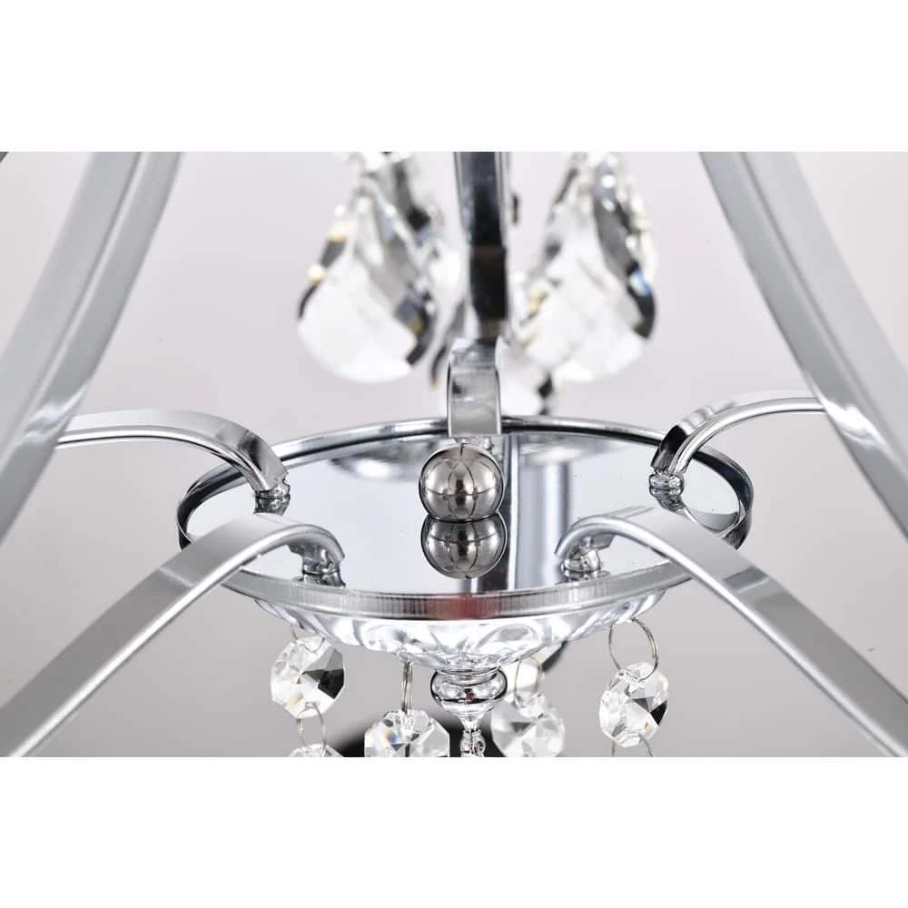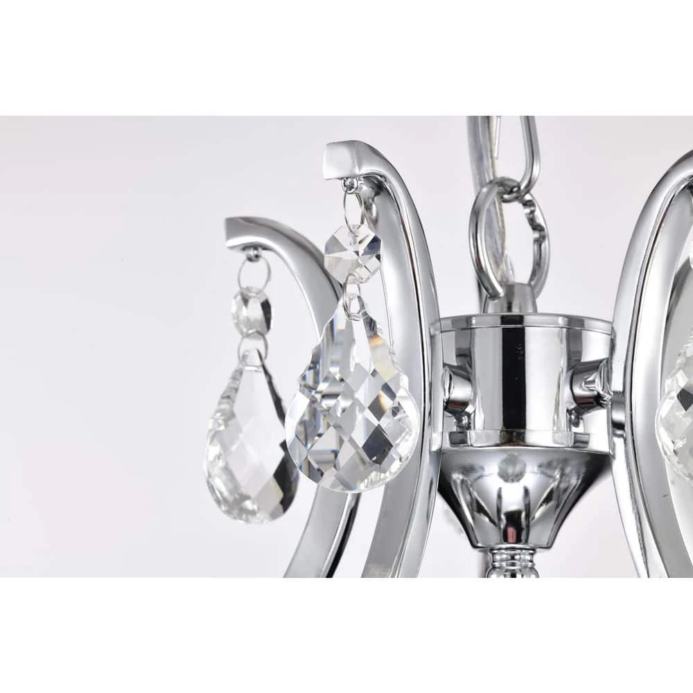 Elevate your home with the elegant Miranda 5-light crystal chandelier. At first sight, the style of this chandelier may seem classic and traditional, however there are subtle details that take this light to the next level. The slight curve of the chandelier arms are an unexpected, yet eye-catching detail. The bobeches feature intricate carvings that complement the multi-faceted teardrop crystals. The chrome finish of this chandelier is sure to reflect the five E12 candelabra bulbs (not included), sending sparkles and shimmer throughout any room. Place this chandelier above the entryway, dining room, or living room for an enchanting ambiance. For ease of installation, this chandelier is equipped with an adjustable 40 in. chain that may be shortened to suit a variety of different ceiling heights or room sizes. We recommend adding a dimmer switch with dimmable bulbs to adjust the mood accordingly.