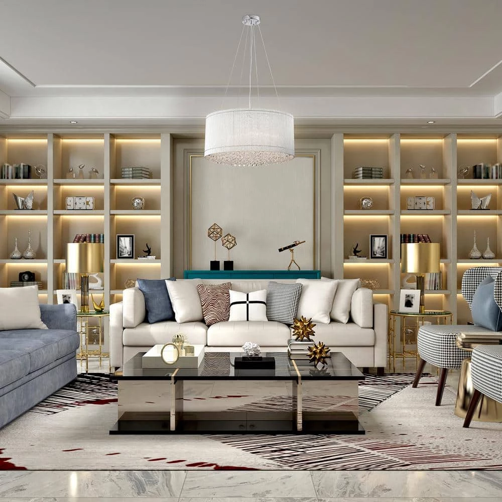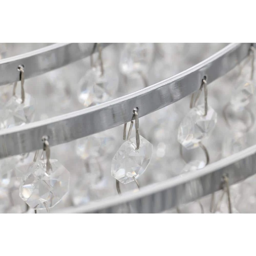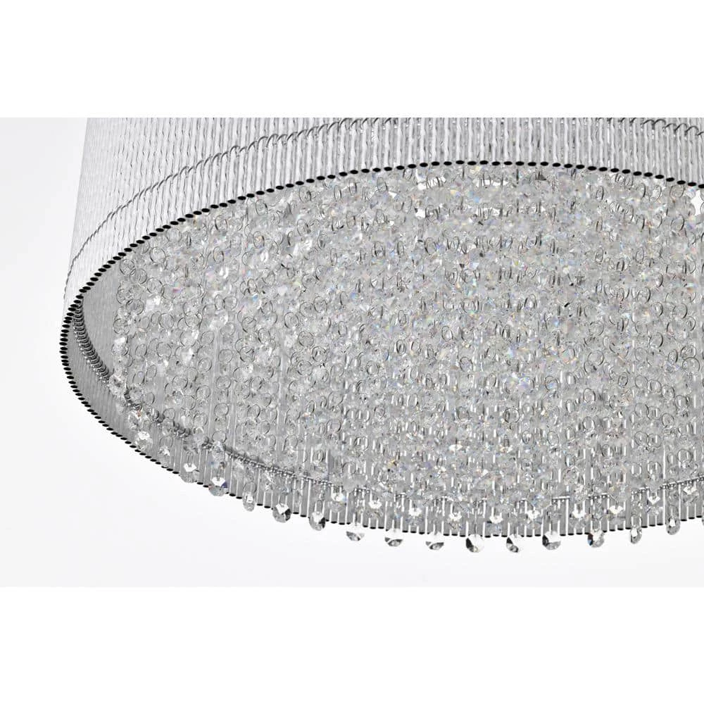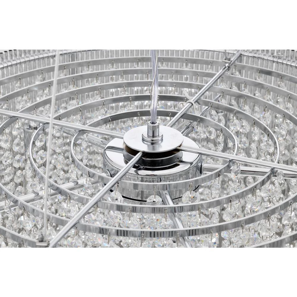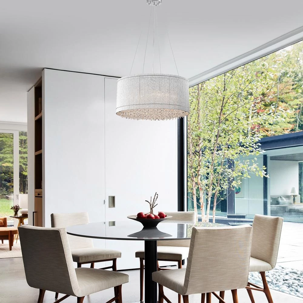 - Shiny chrome finish of this drum chandelier complements modern or contemporary homes