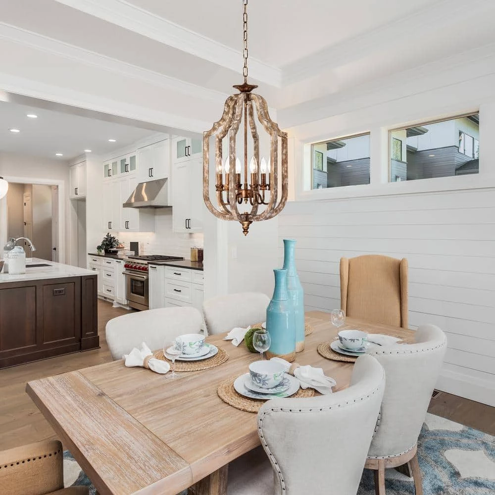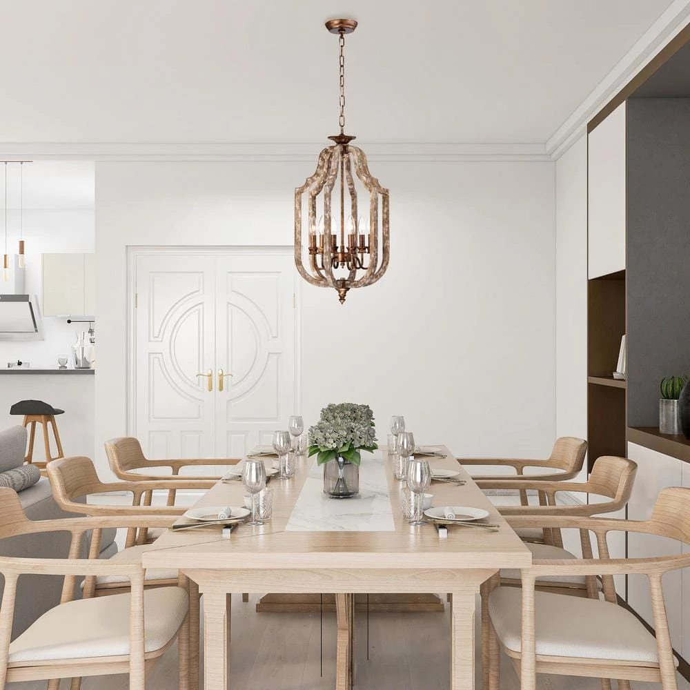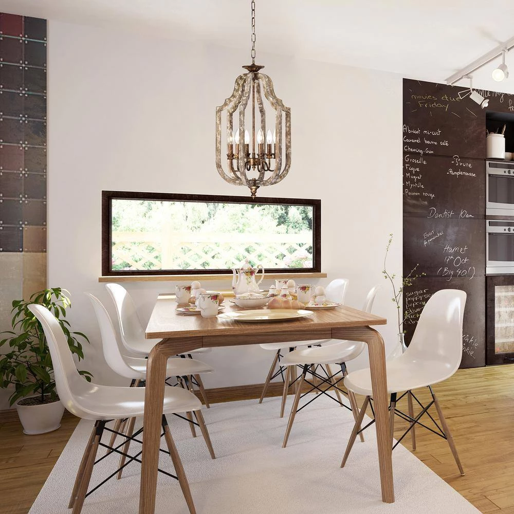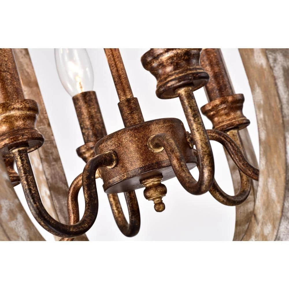 With a mixed material design, our 6-light pendant combines wood and metal for a rustic feel. The weathered wood instantly adds charm to this candlestick chandelier while the antique gold finish adds richness. Offering an abundance of light, this farmhouse chandelier is perfect overhead a dining room, living room, or foyer.