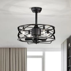 Promo ๐ฅฐ 20 in. Farmhouse Indoor Matte Black Drum Cage Reversible Ceiling Fan with Light Kit and Remote Control by Edvivi ๐
