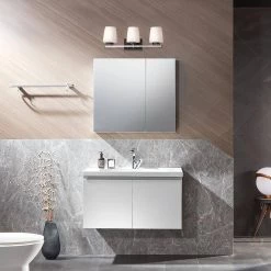 New ๐ Aliana 22.5 in. 3-Light Black and Brushed Nickel Modern Vanity Light with Etched White Glass Shades by Edvivi ๐