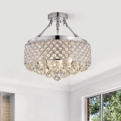 Buy โ๏ธ Clara 10 in. 3-Light Chrome Glam Crystal Flush Mount Light by Edvivi ๐