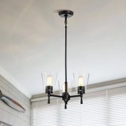 New ๐ฅฐ Briarwood 3-Light Matte Black Modern Chandelier with Clear Cone Glass Shades by Edvivi ๐