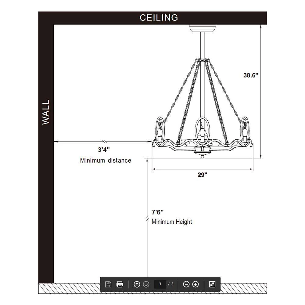 - Ceiling fan dimensions: 29 in. Dia x 38.6 in. H