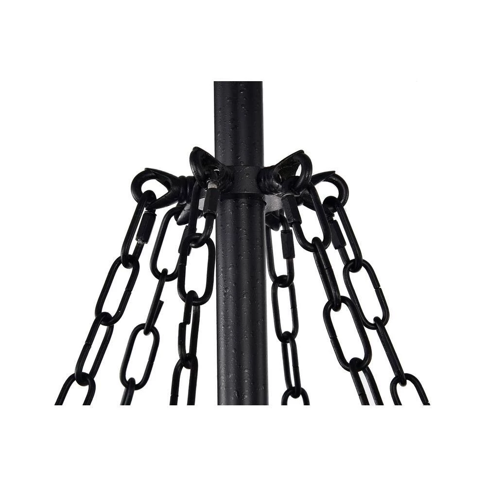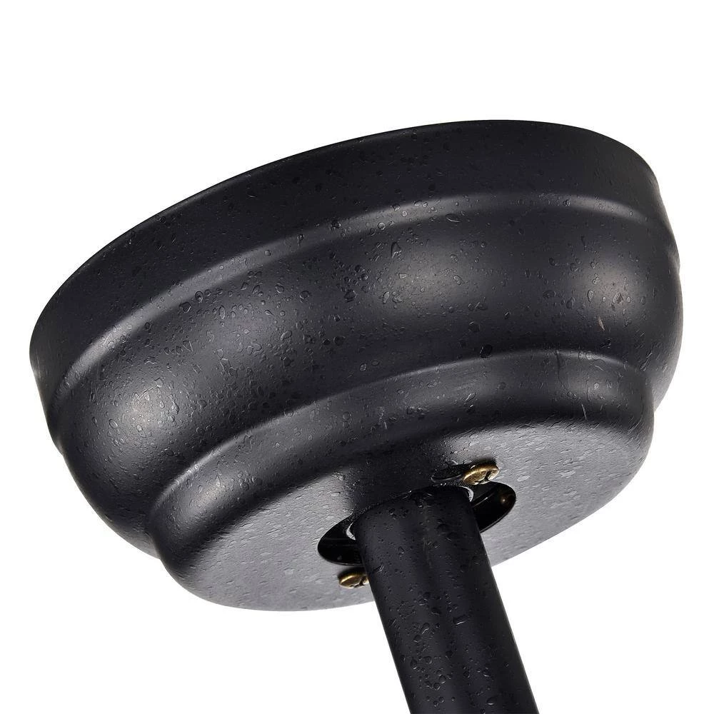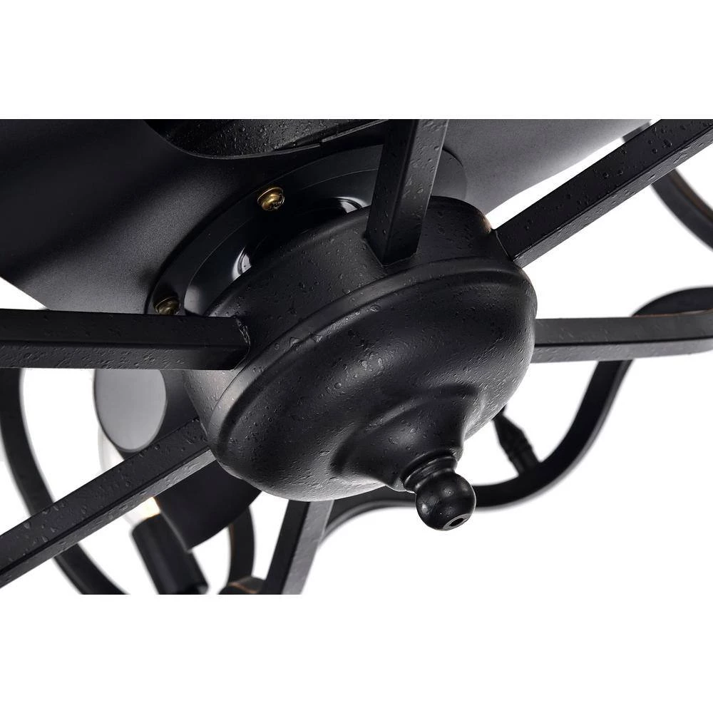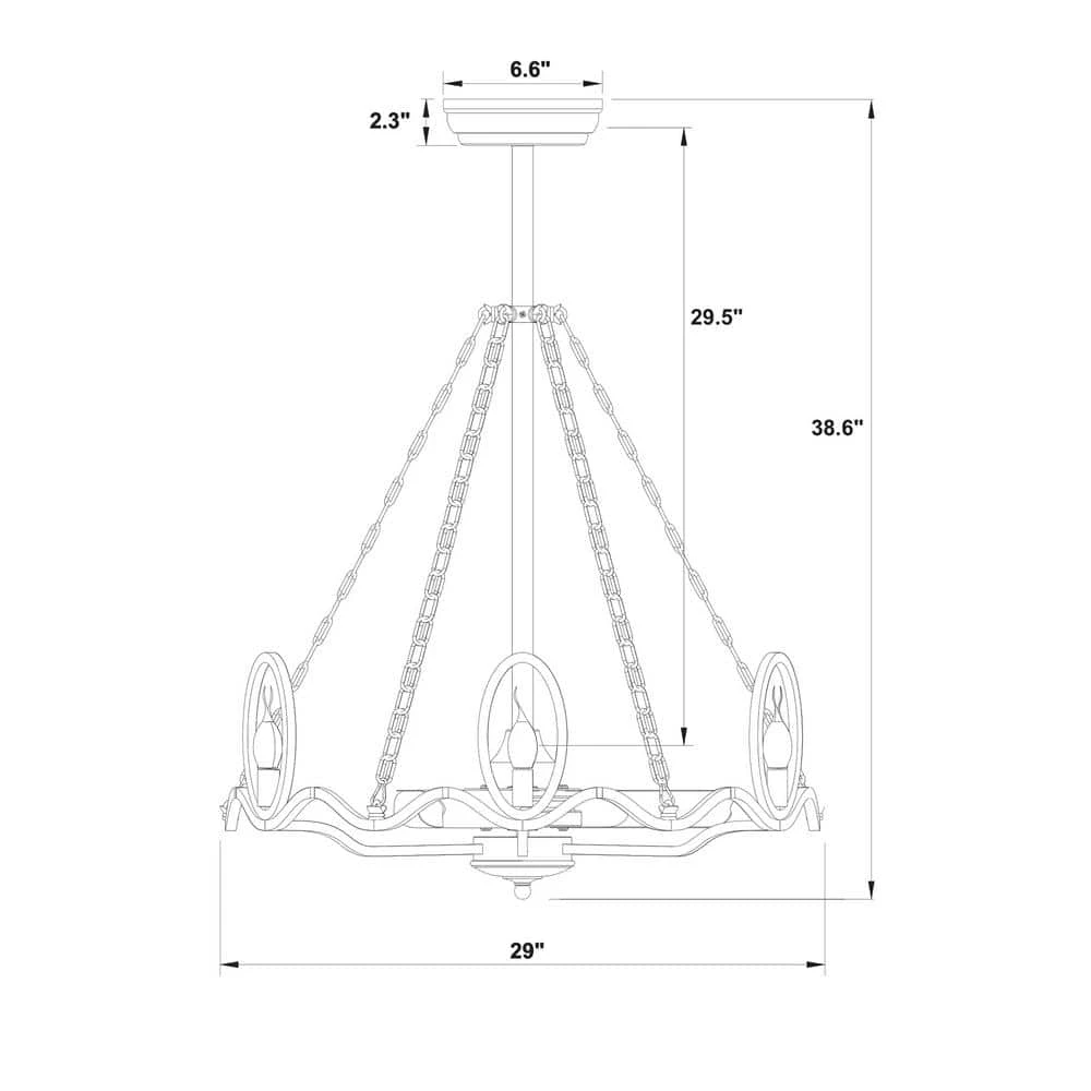 This unique industrial ceiling fan is perfect for small rooms. The forged black hardware and rustic chains of this black ceiling fan make it a perfect fit in any farmhouse or industrial design. The 3-fan blades of this fandelier loop around in combination with the 6 speed motor and create significant airflow that can be adjusted.