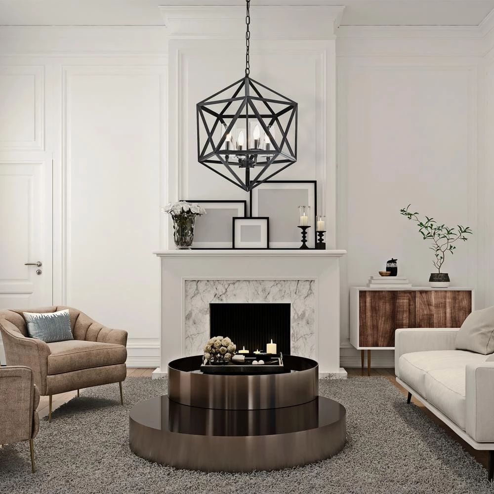 This antique black modern farmhouse chandelier features a 4 light design that will illuminate and glow in any entryway, kitchen, dining room, and bedroom. This geometric chandelier features a 40 in. adjustable chain that can be shortened by removing links to suit any room size or ceiling height. This black chandelier would be great for an entryway or any other rooms. Easy to clean and assemble.