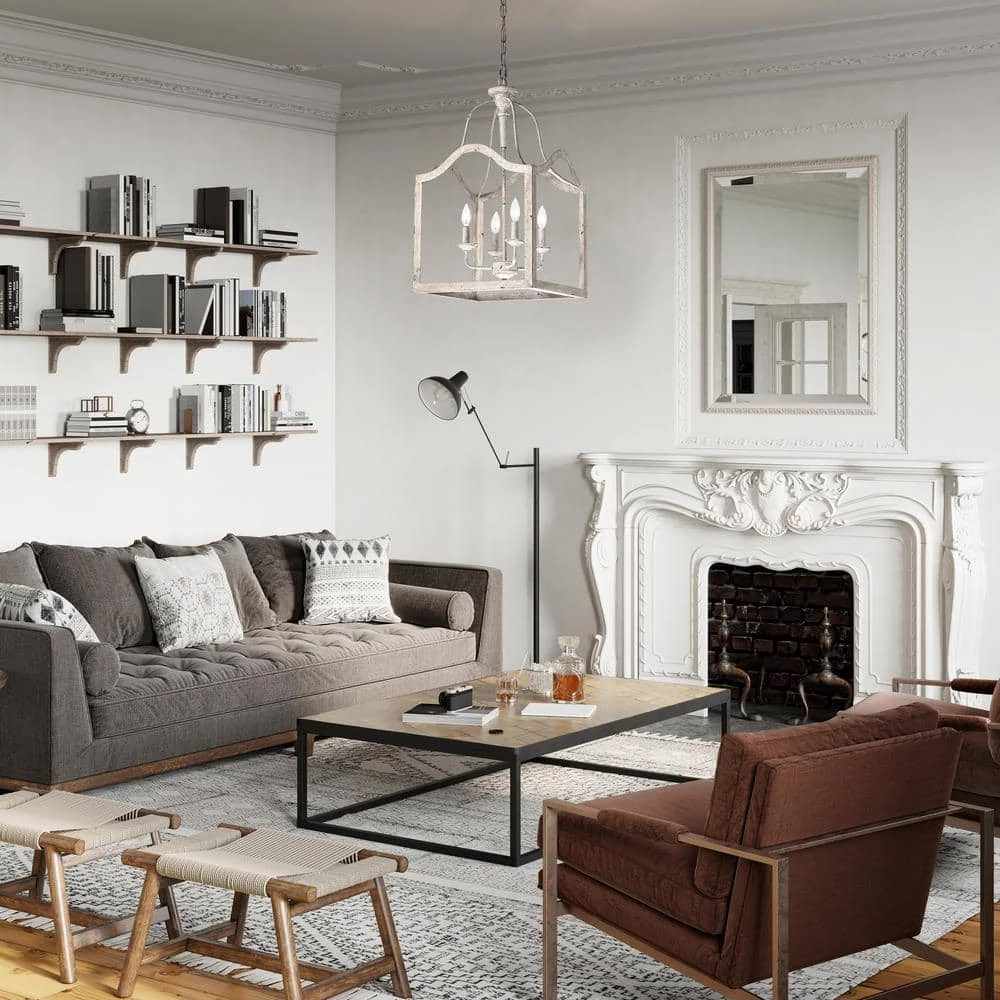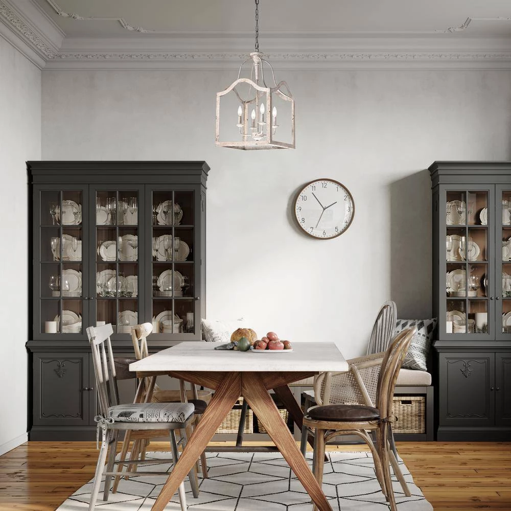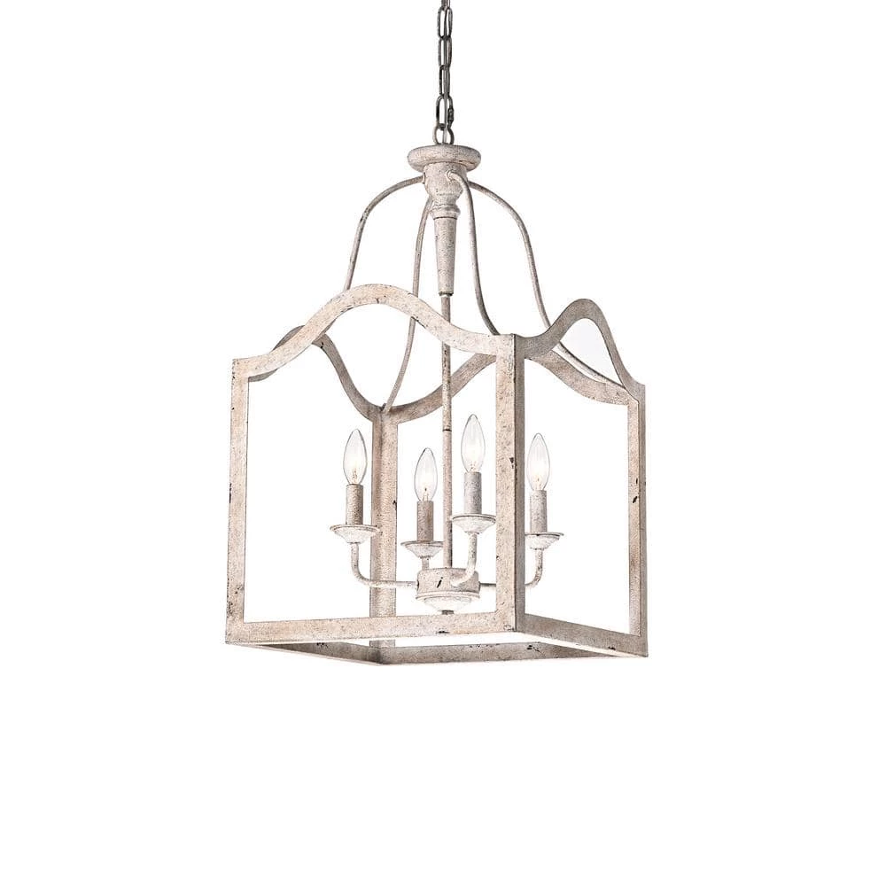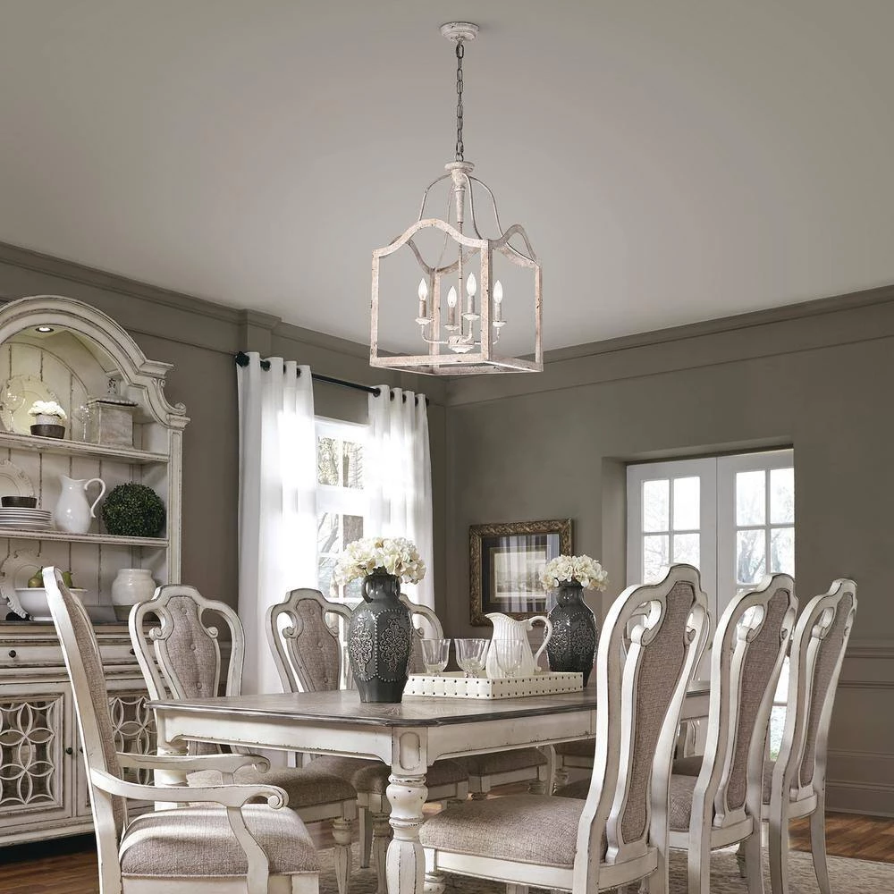 Inspired by French country design this lantern chandelier will compliment your modern farmhouse style. The antique white, 16 in. farmhouse chandelier is perfect for a kitchen table or dining room. The 48 in. chain can be adjusted by removing links to allow for a custom hanging height and we recommend installing a dimmer switch to this antique white chandelier for even more customization.