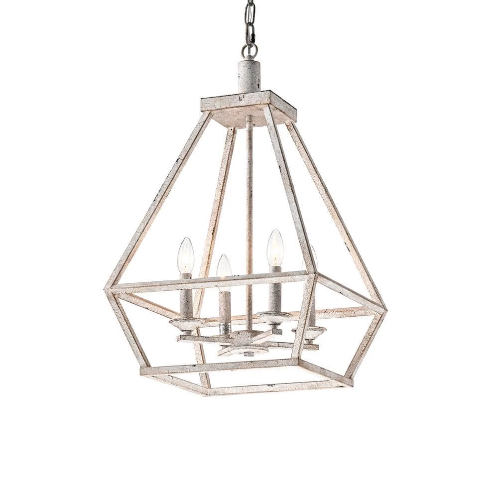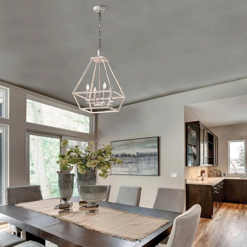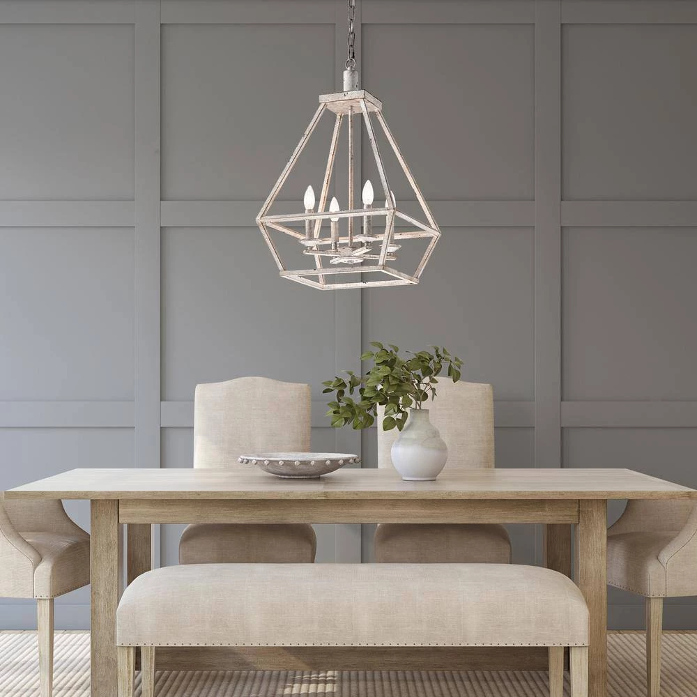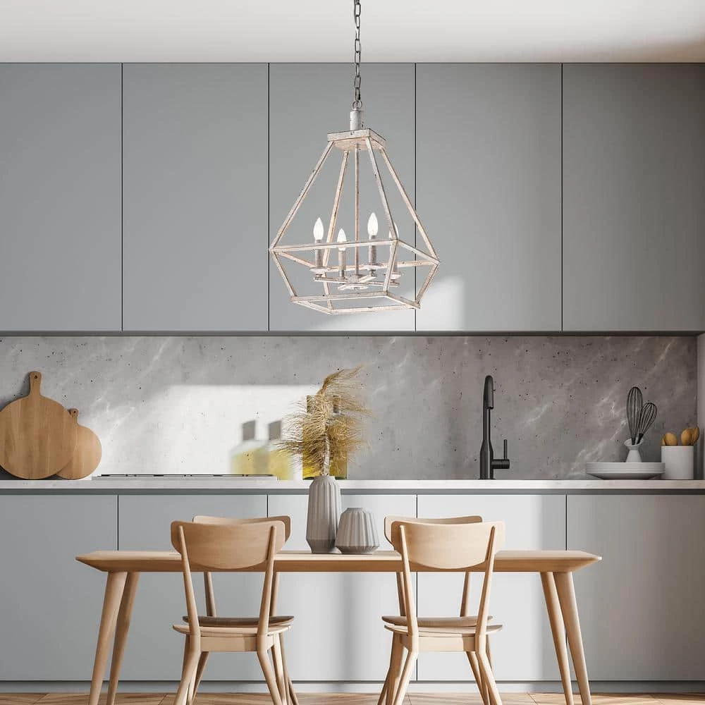 Inspired by French country design, this lantern chandelier will complement your modern farmhouse style. The antique white, 16 in. chandelier is perfect for a kitchen table or island. The 48 in. chain of this modern chandelier can be adjusted by removing links and allows for a custom hanging height and we recommend installing a dimmer switch for even more customization.