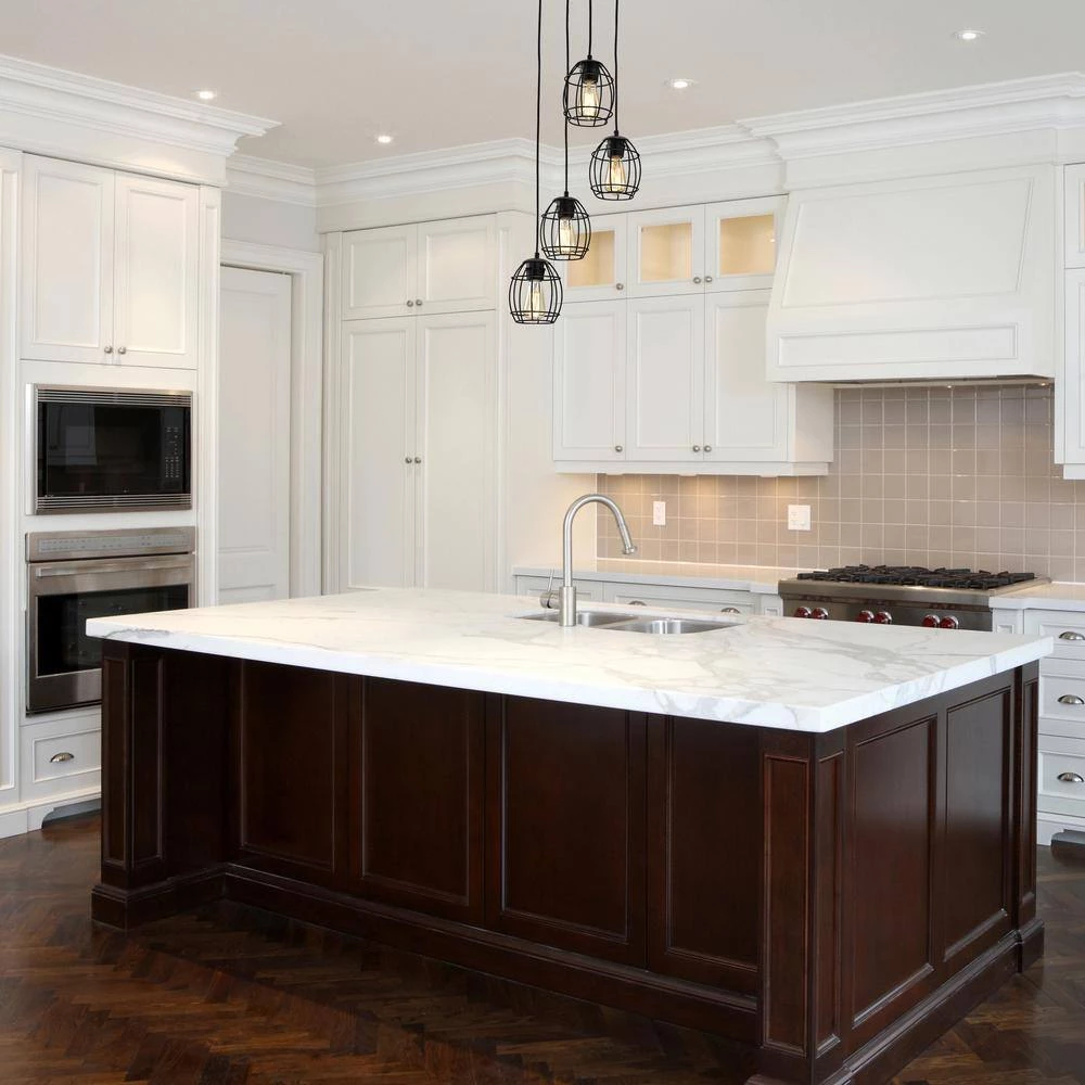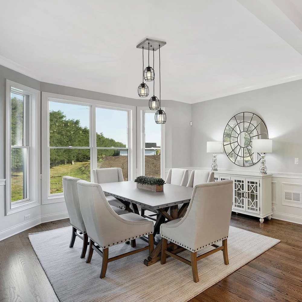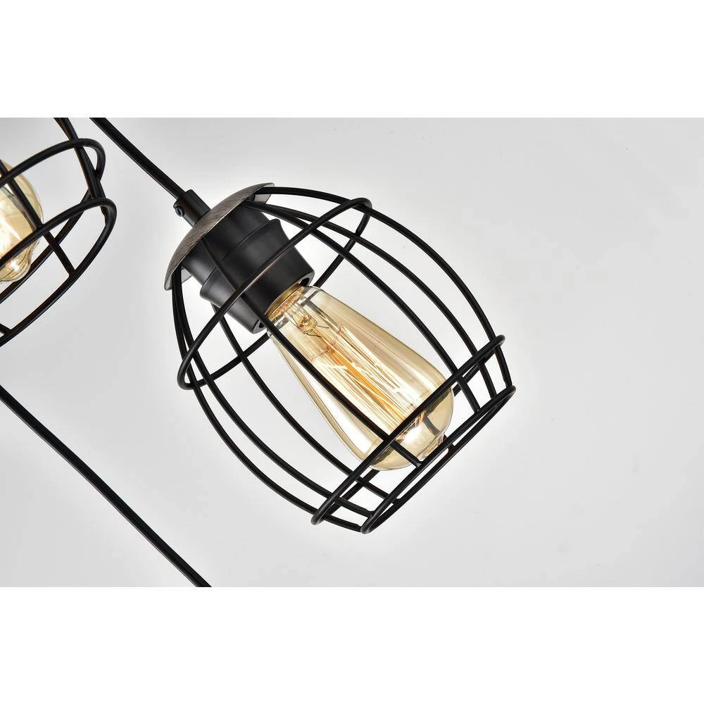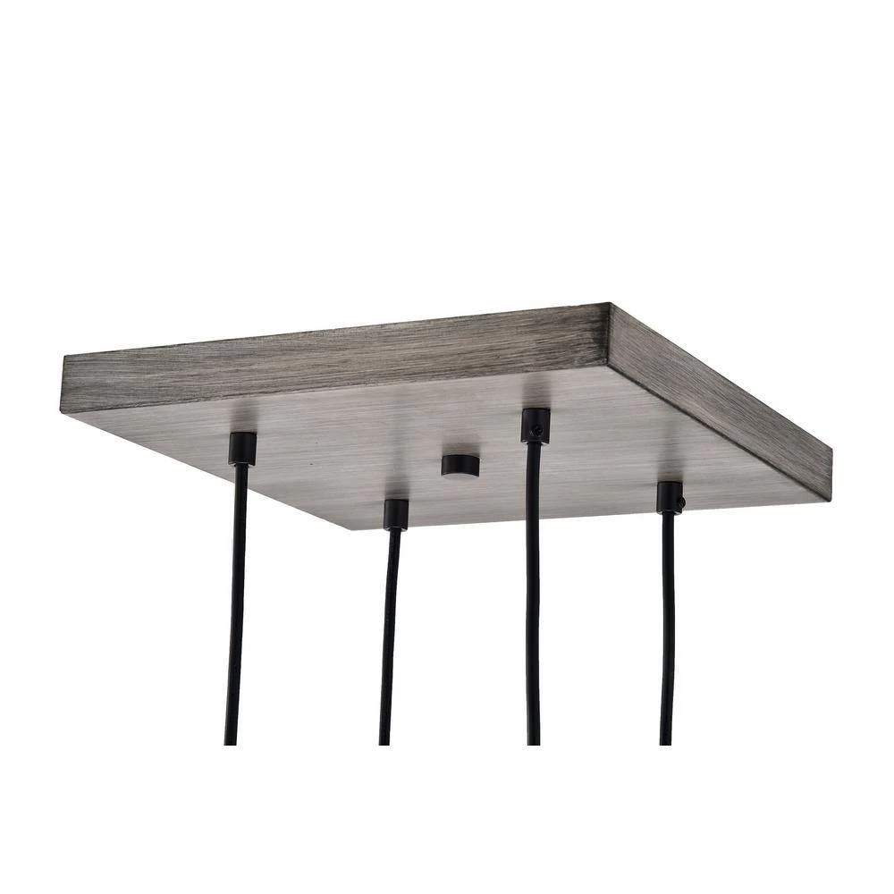 Merging rustic finishes and modern sensibility, our new 4-light pendant commands a space. The black welded cage hangs at different levels, adding intensity to any design plan. The wood finishes on the cage holders and ceiling canopy balance the ceiling light fixture while adding a touch of natural elements. Place this modern pendant light above your kitchen table or living room to complete your interior.