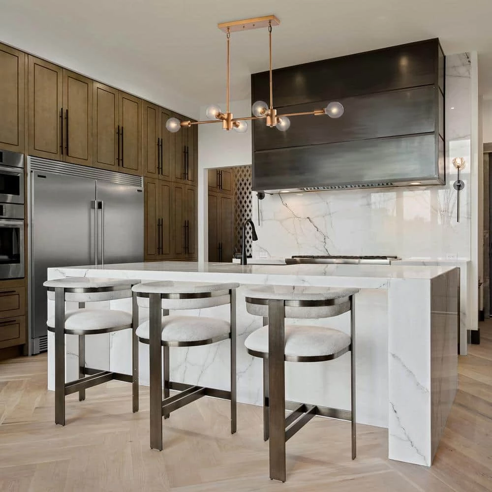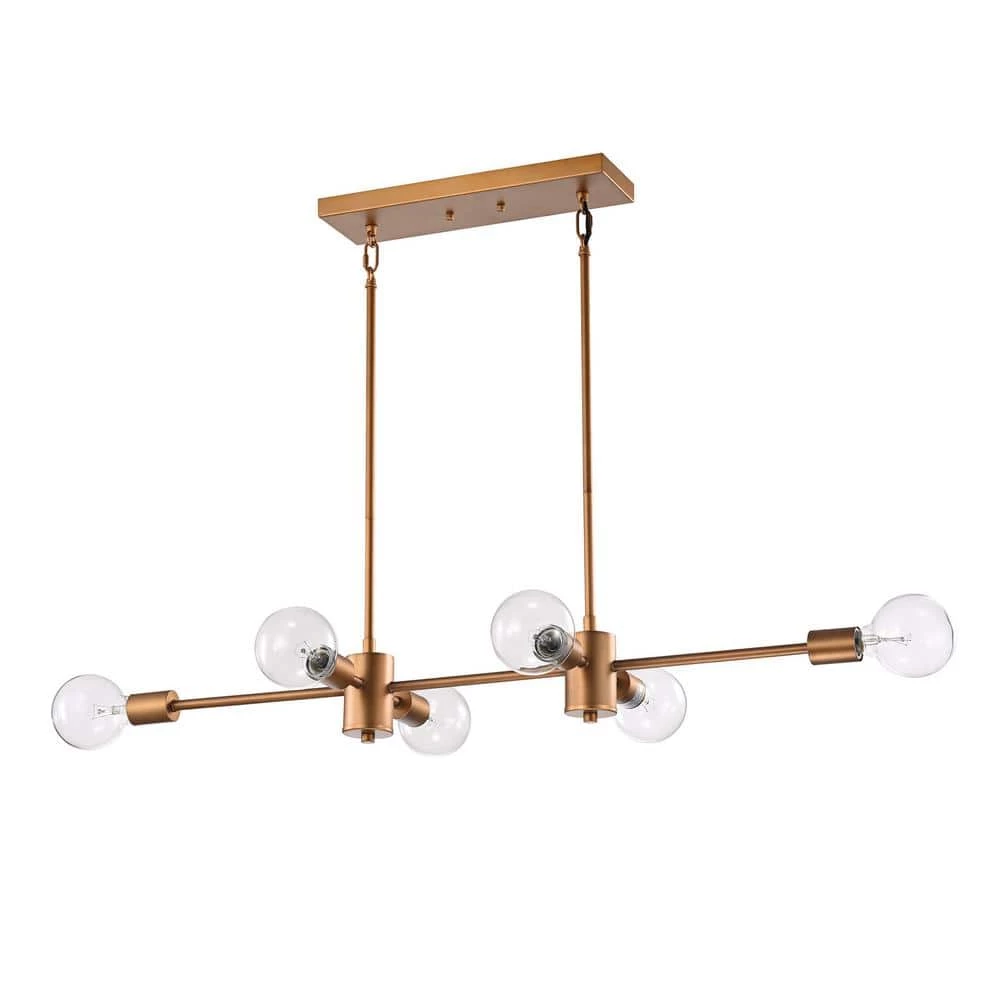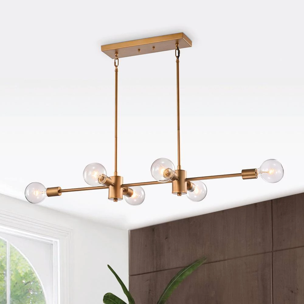 This bold natural brass chandelier creates a striking design statement with its simple lines and modern color. This 6-light chandelier illuminates the space and the light fixture can be mounted using any combination of the included rods. We recommend you add a dimmer switch for further customization.